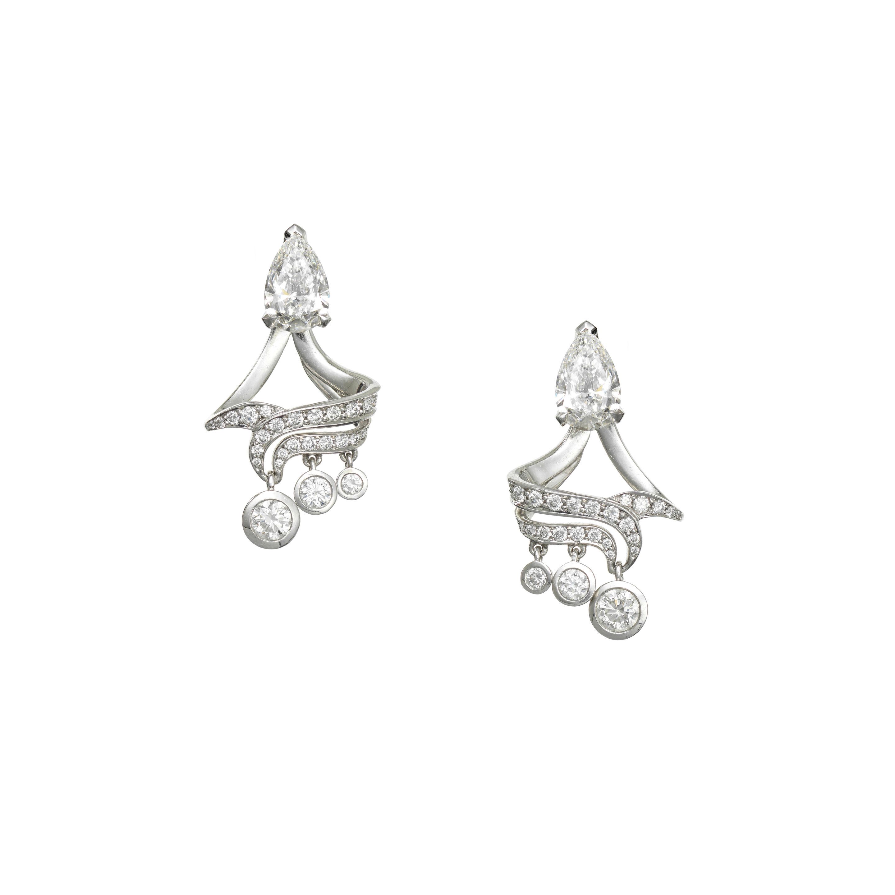 Boodles: Diamond 'Chalk Streams' Pendent Earrings, 2018. Sold for £14,080 inc. premium.