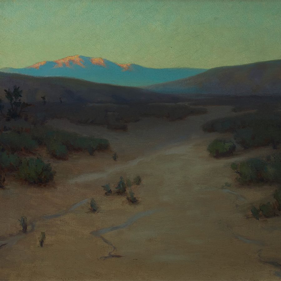 I really enjoy seeing an artist known for one kind of painting shift gears and do something completely different. Gamble, who is justifiably held in high regard for his California wildflowers, is here painting an understated tonalist view of a sunset in the high desert. The whole mid and foreground are so restrained which only accentuates the blue light on the mountains beyond.