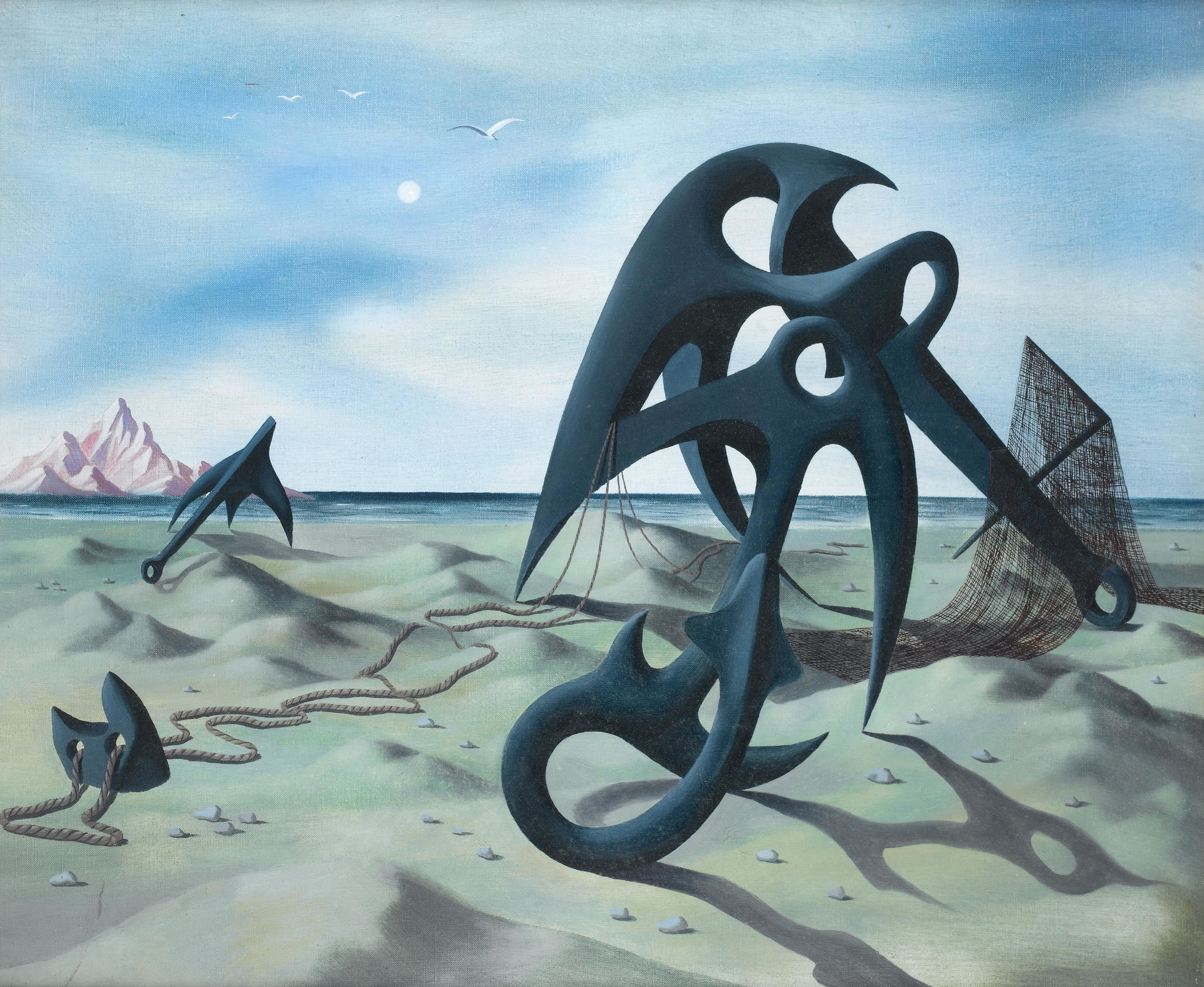 While the lodestar for Surrealism was Paris, there were other hubs. Magritte was in Brussels and Leonora Carrington worked for decades in Mexico City (her 1969 painting Operation Wednesday, a surreal take on Mexican politics, sold at Bonhams in 2021 for £682,000). And a thriving, if lesser known, British scene emerged, beginning with the International Surrealist Exhibition at the New Burlington Galleries in London in 1936. Salvador Dalí nearly suffocated when attended the opening in a diving helmet.