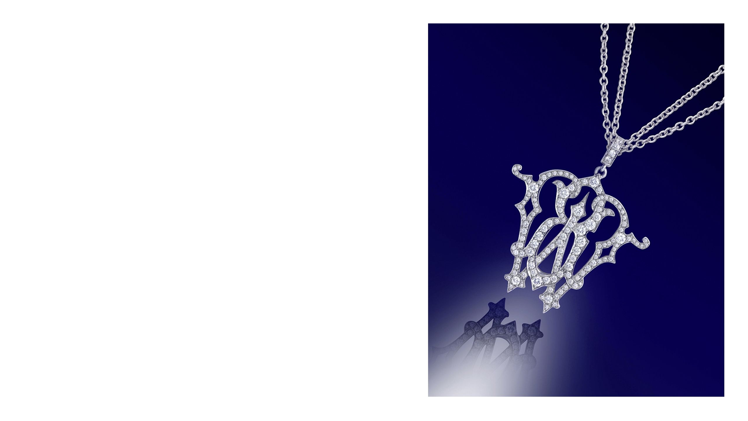 Another personal piece of jewelry in Barbara’s collection is this pavé-set diamond monogram necklace hand-crafted for her by Harry Winston, with the letters ‘BW’, suspended from a cable-link chain.