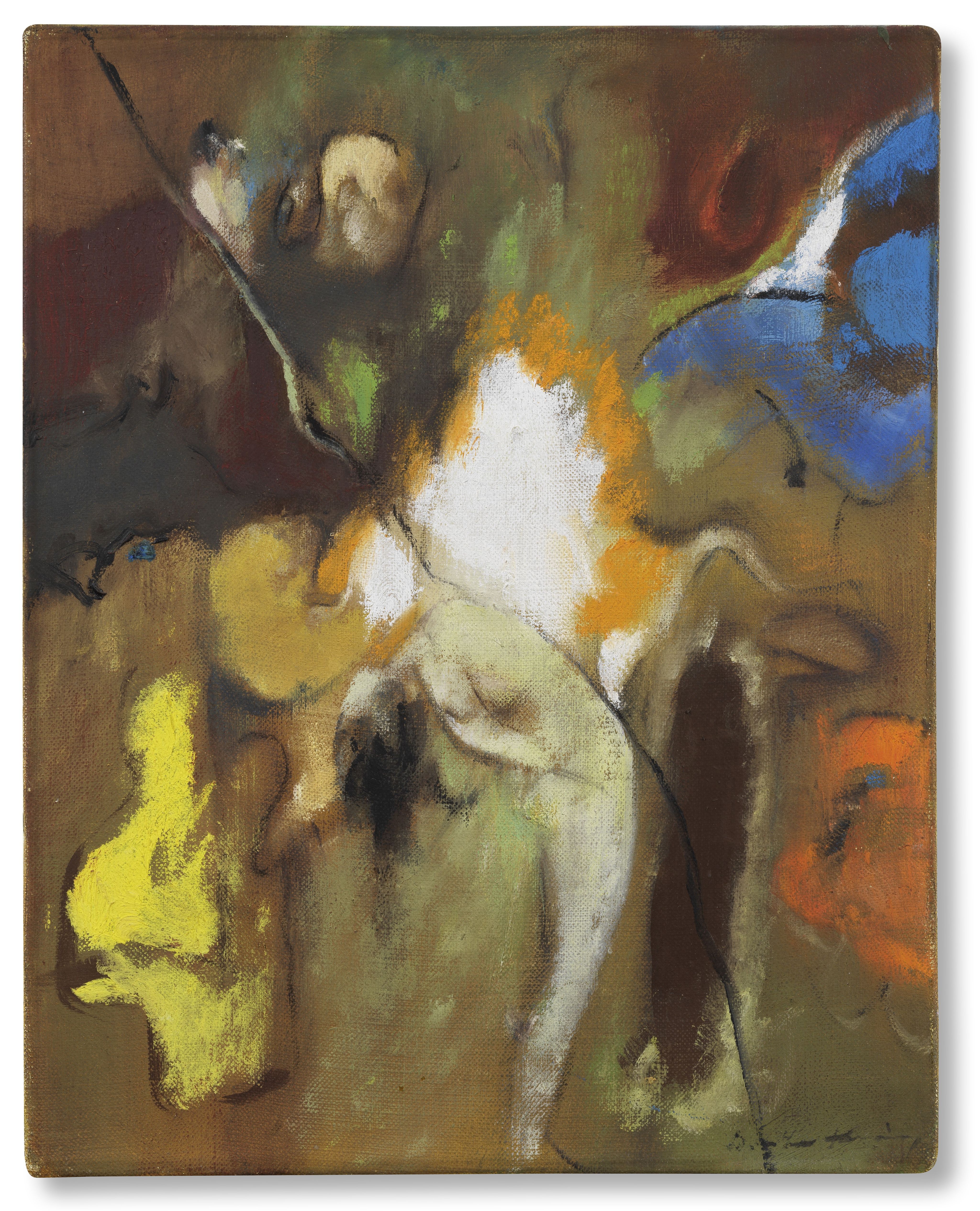Over a seven-decade career, American artist and writer Dorothea Tanning deftly blended the surreal and real to uncanny effect. Born in Galesburg, Illinois, she first encountered Surrealism in New York in the 1930s; the MoMA show Fantastic Art, Dada and Surrealism had a particularly potent effect on the young artist. In 1942, she met Max Ernst – then married to Peggy Guggenheim – and the pair wed in 1946. Though she frequently fused the familiar with the strange and explored themes of desire and sexuality, Tanning’s style was ever-evolving. After 1955, her painting eschewed the precise figurative dreamscapes for which she was best known and ventured into more confident gestures that verged on abstraction. This is evident in Untitled, sold by Bonhams for £16,500 inc. premium in 2021. In the 1960s, her evolution continued into sculpture, predominantly created in fabric and found objects. In 2019, a seminal retrospective at the Tate Modern cemented Tanning as one of the greats of 20th century Surrealism.