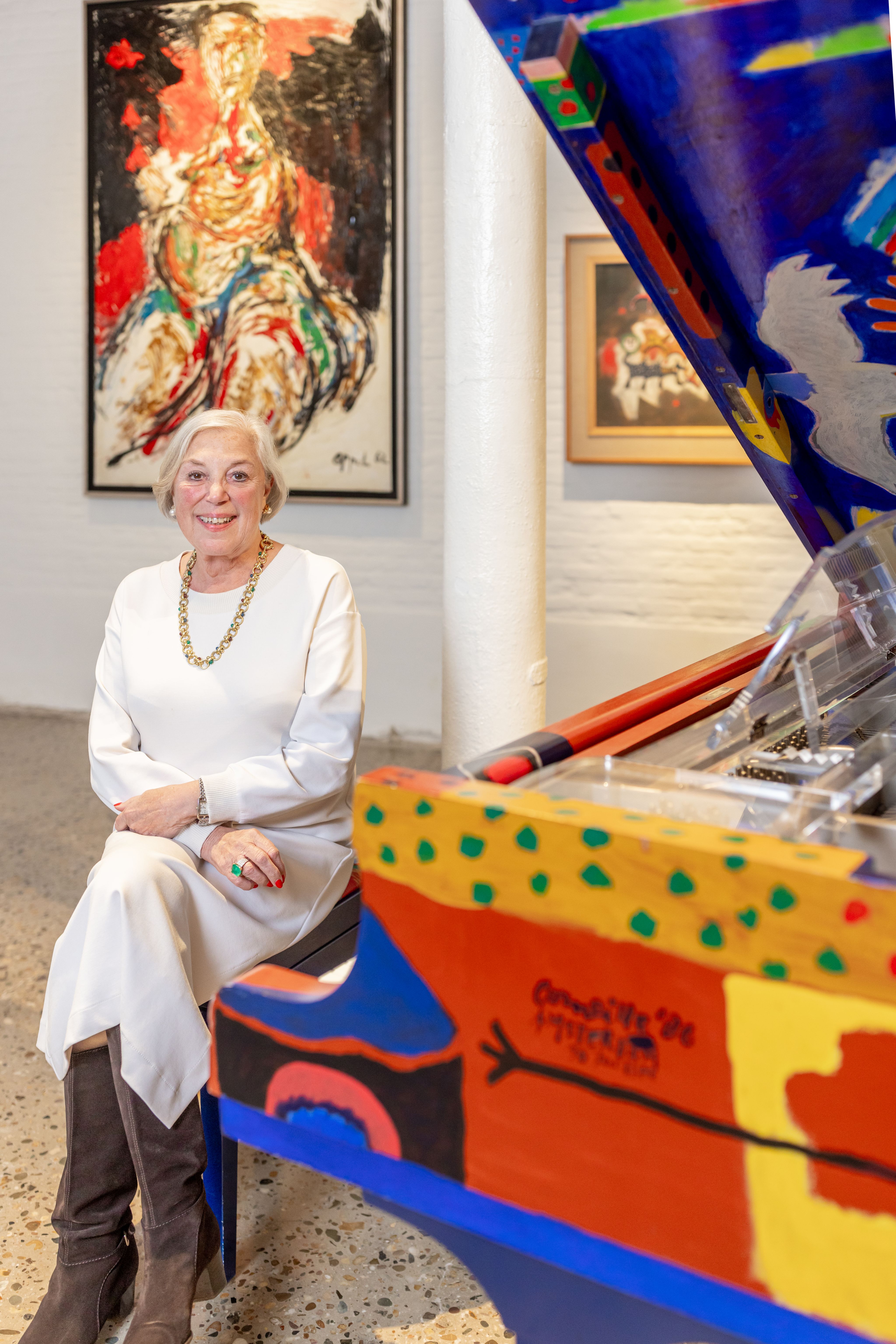 The collection features some 200 works by all the leading exponents of this Northern European movement: Karel Appel, Pierre Alechinsky, Corneille, Asger Jorn… indeed, there are so many works that a sizable proportion are displayed on racks in a stacked hang. I know this because a gallery assistant slowly pulls out one of the wire panels to reveal a series of seminal, museum-quality masterpieces. The colours, paint-laden brushstrokes and jangly shapes jostle together on the same mesh square. It’s quite a sight. Oh, and there’s a piano here that was transformed by Corneille.
