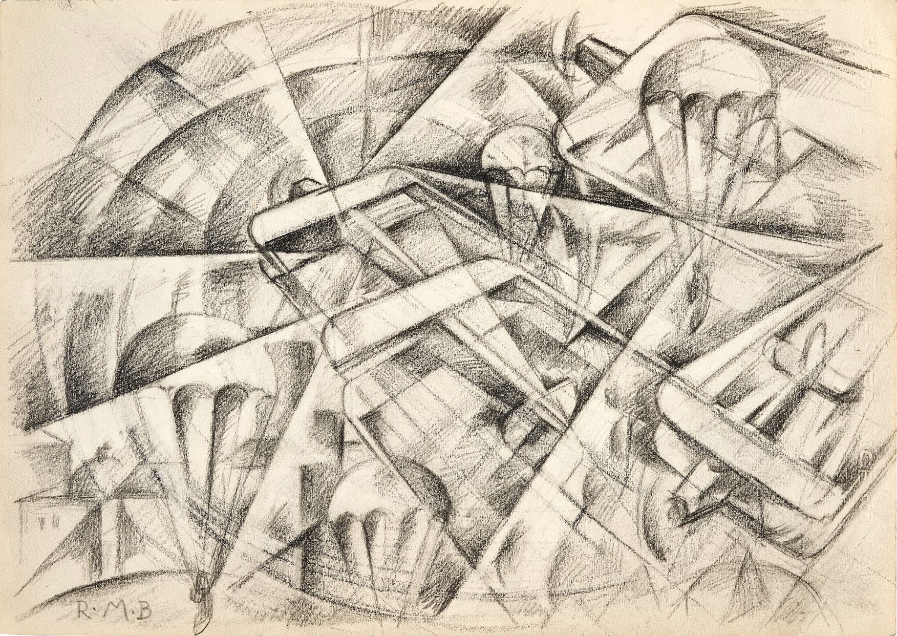 But what set Aeropittura apart from its predecessor was the shift in interest from ground-bound transportation to modern aircraft - a novel and exciting development at the time. According to its manifesto, Perspectives of Flight, ‘The changing perspectives of flight constitute an absolutely new reality that has nothing in common with the reality traditionally constituted by a terrestrial perspective.’ The artworks that followed harnessed ‘the immense visionary and sensory drama of flight.’