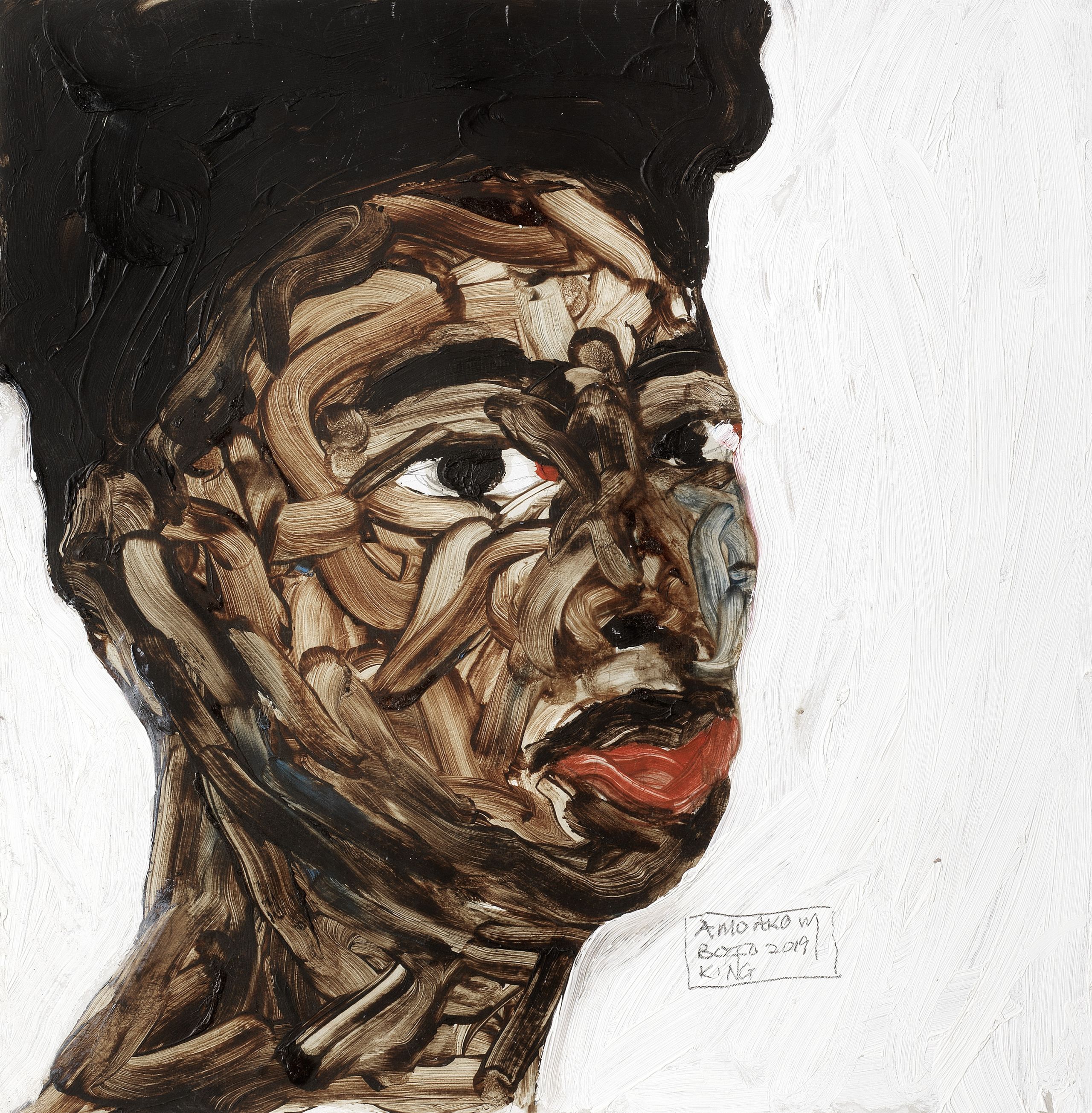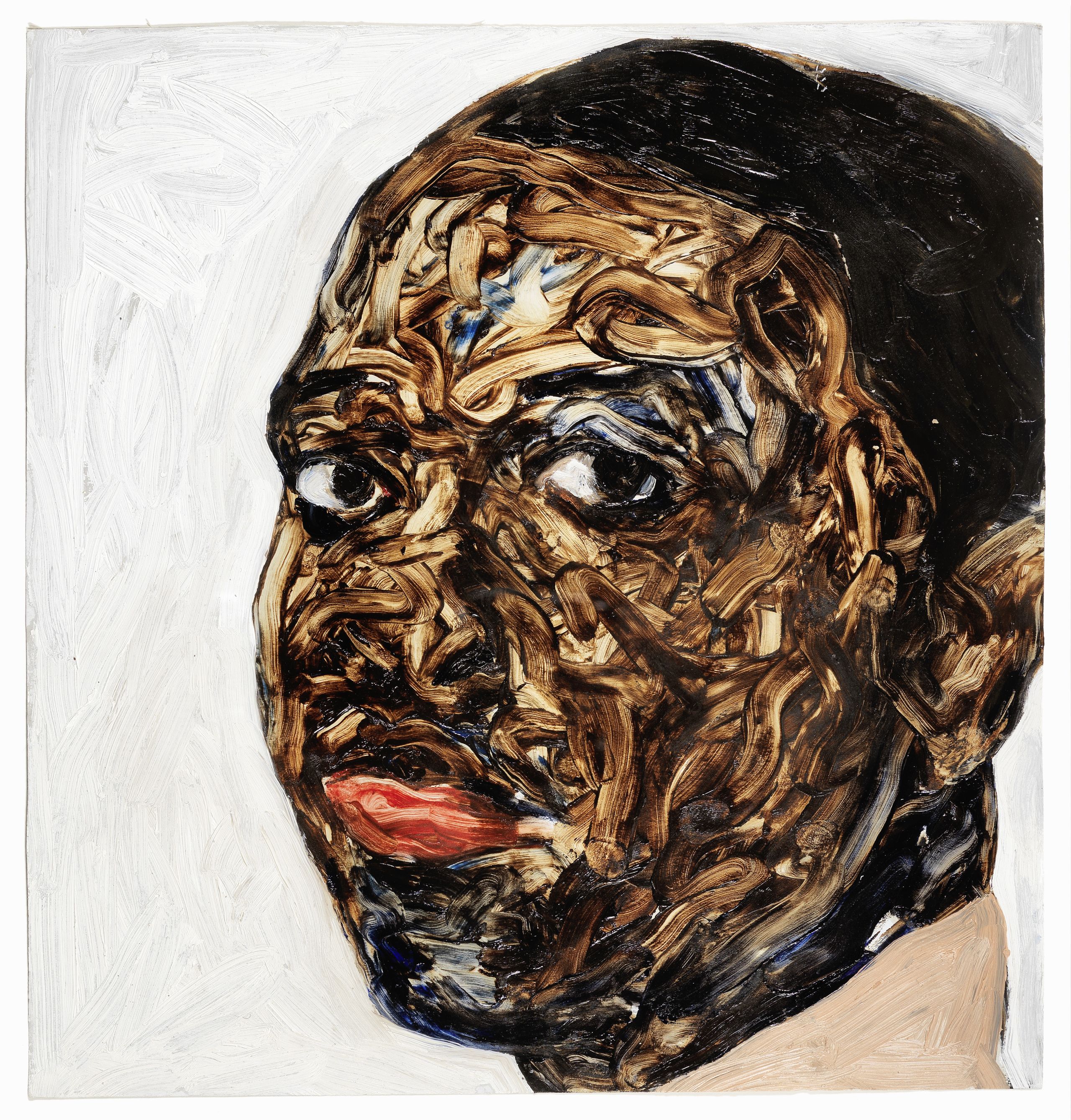 Boafo’s portraits have been compared to those of Egon Schiele, whose portraits are also gestural in their approach and often feature monochromatic backgrounds to highlight the intensity and intimacy of his subject’s gaze.