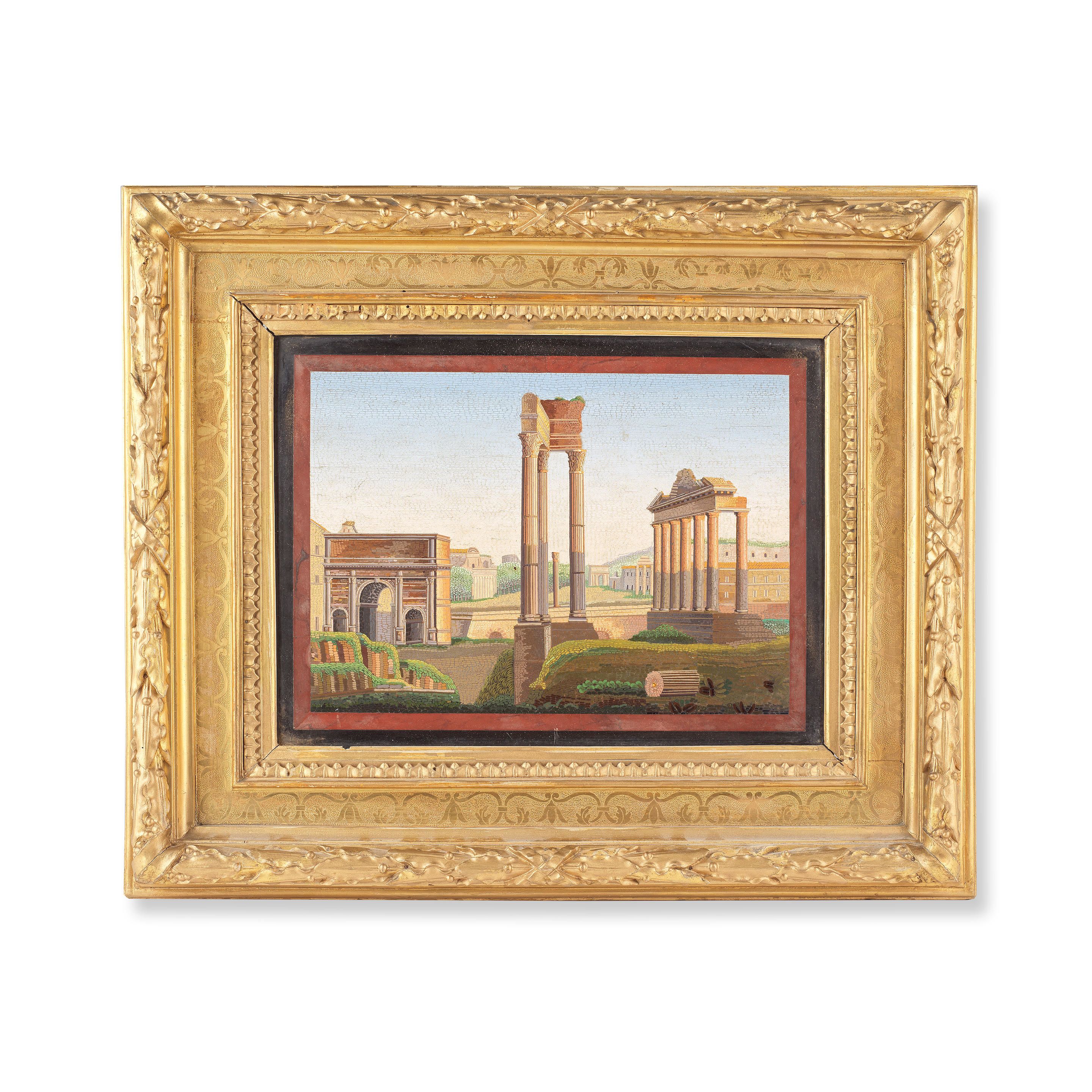 Views of Italian landscapes were so popular with Grand Tourists that they were not only to be found in paintings. In 2020, we sold a rare Berlin part service , circa 1823-32, decorated with micro-mosaic views of Roman archaeological sites based on late-18th century prints. We also sold a rare Naples, Real Fabbrica Ferdinandea, topographical solitaire for £19,125 in 2022.