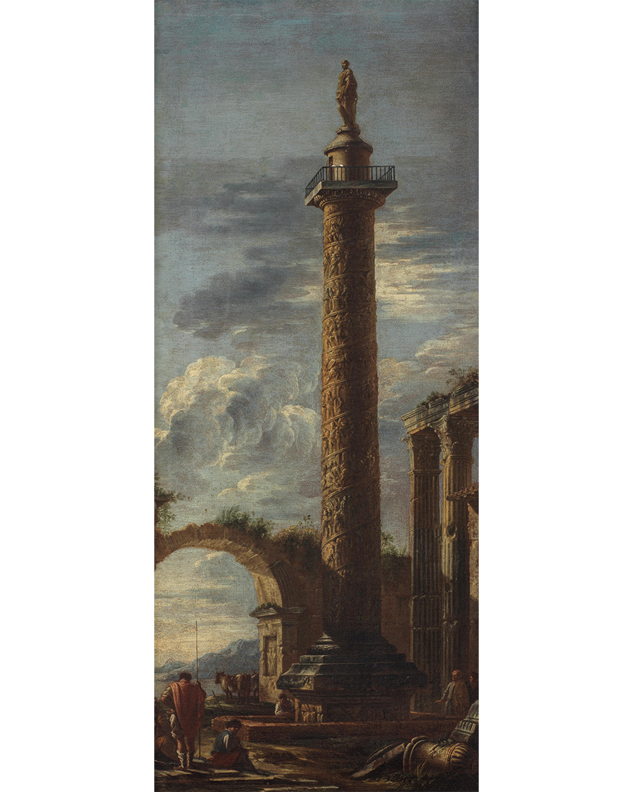 Lot 624. Giovanni Ghisolfi (circa 1623-1683), Trajan's column with figures nearby; and An architectural capriccio with an obelisk (2). Estimate: £12,000 - £18,000