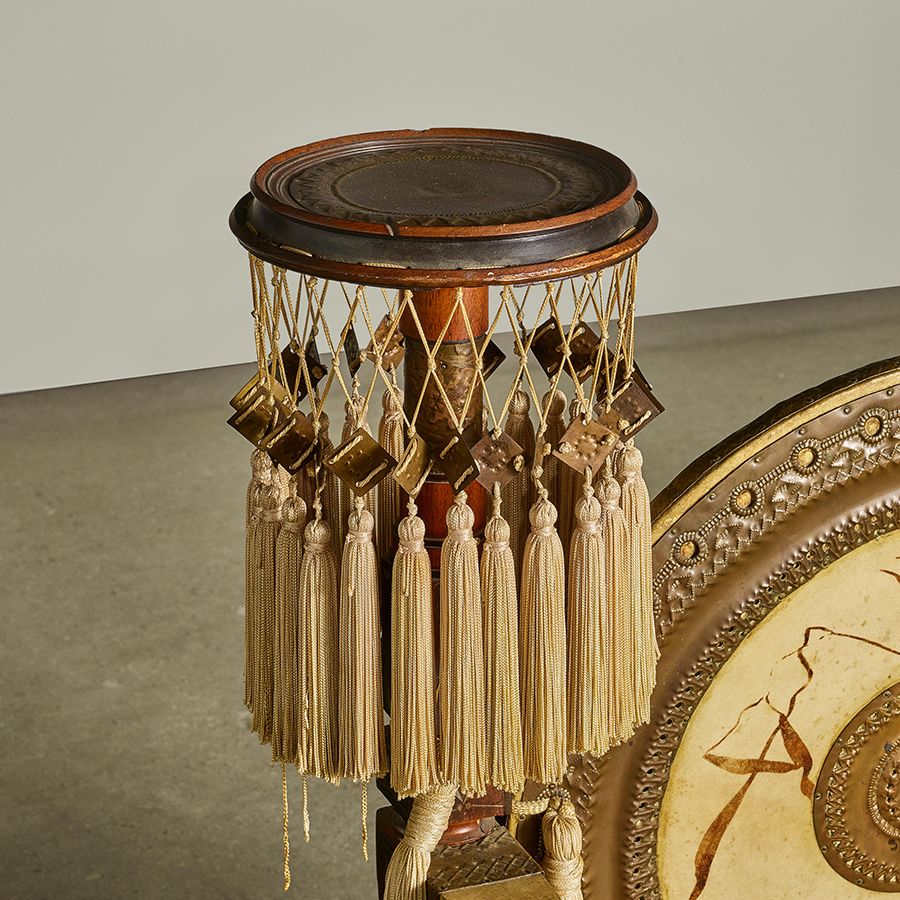 Strongly influenced by Art Nouveau aesthetics, Carlo rejected the heaviness of classical, Baroque, or Renaissance-style furniture which was fashionable at the time. Although he is most famous for his furniture, he also made silverware, musical instruments, ceramics, paintings, and designed interiors. Carlo’s work wove together organic shapes and motifs with ‘exotic’ elements influenced by Orientalist and Moorish visual culture. He used natural materials like wood, parchment, velum, and copper to create pieces with rich tactile materiality.