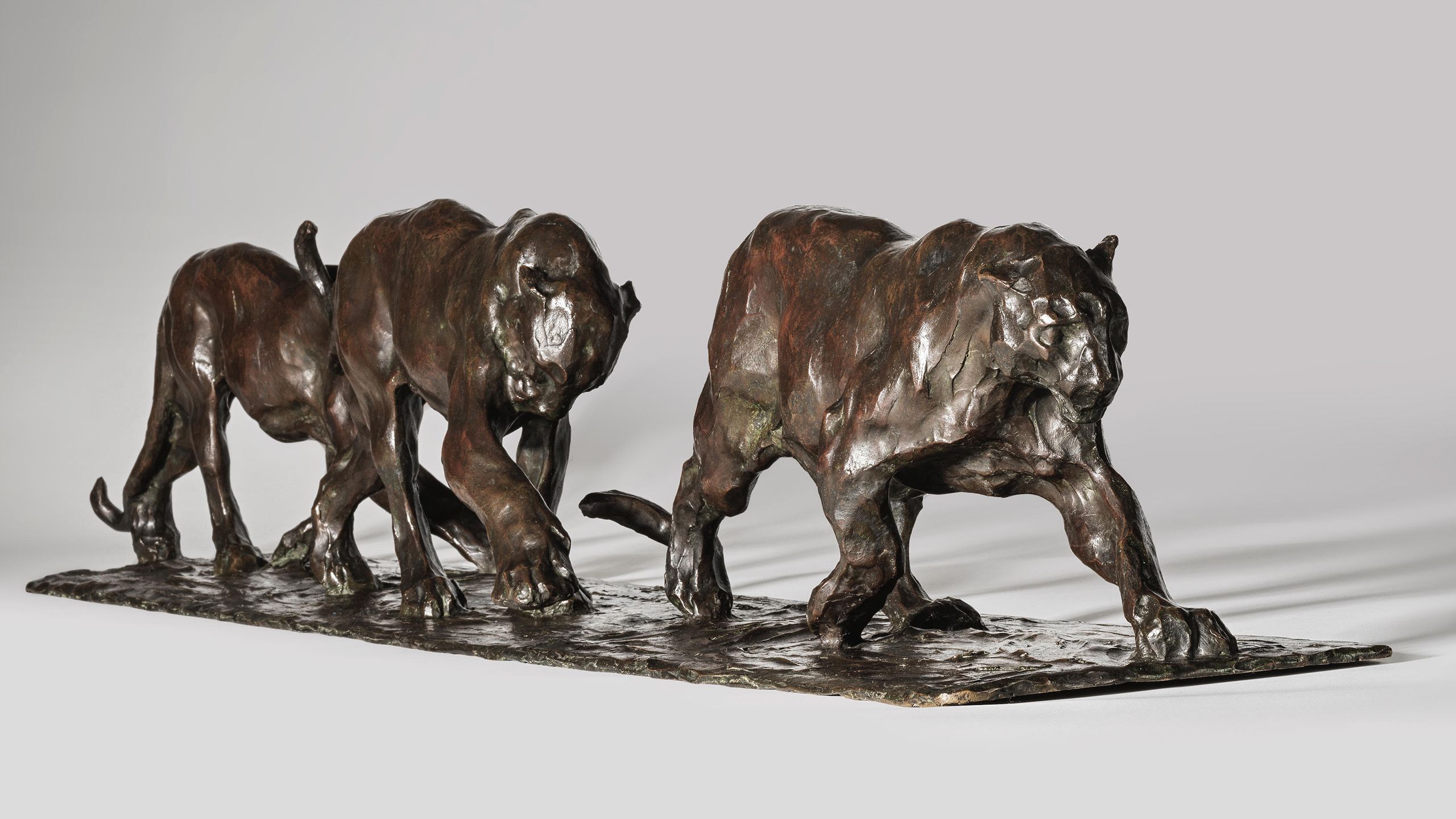 Rembrandt Bugatti (1884-1916), Trois panthères marchant. Sold for €3,678,400 inc. premium on 5 June in Paris.