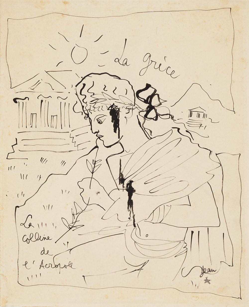 Jean Cocteau (1889-1963). La colline de l'Acropole. Estimate: US$3,000 - US$5,000
