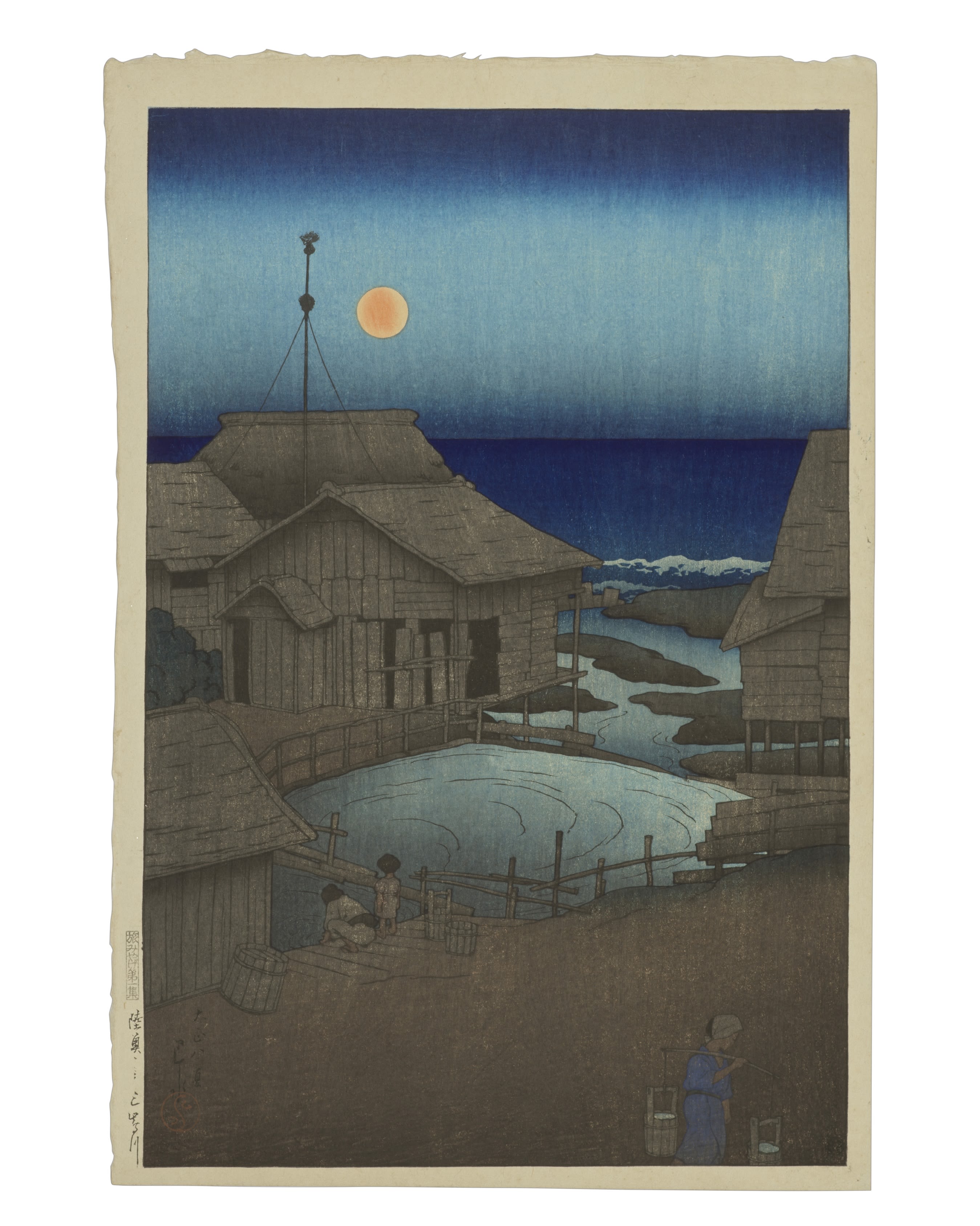Most major museum collections of Hasui’s prints are in the United States, where his work first gained international acclaim in the 1920s—but as is clearly apparent from the regular and crowded exhibitions in Japan, along with the impressive results of our recent auctions, the artist’s oeuvre is now experiencing a resurgence in popularity both at home and abroad. Hasui is finally receiving the recognition he deserves, on par with his traditional counterparts such as Hokusai, Hiroshige, and Harunobu.