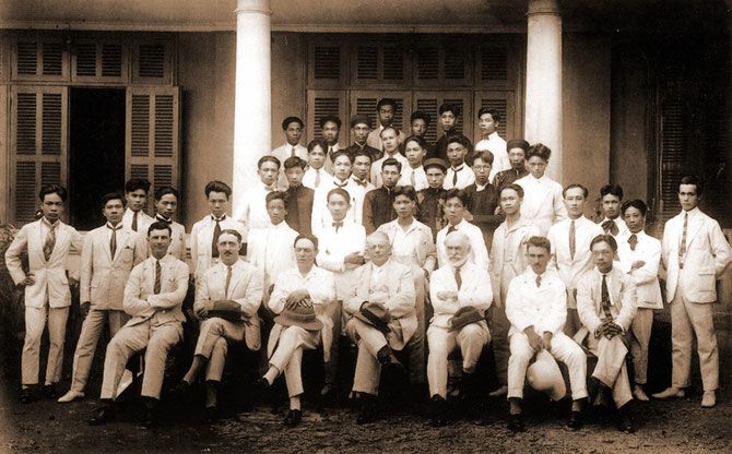 維克多・塔迪厄(Victor Tardieu) 和首屆中南半島美術學院(École des Beaux-Arts de l’Indochine)師生,1926年