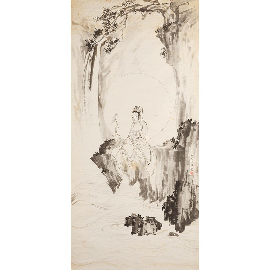 今年躬逢先生辭世六十週年,邦瀚斯書畫部於機緣巧合下,有幸獲得寒玉堂故交家屬之委託,揀選其珍藏數十載的溥儒精品佳作,輯成一組,多數作品尚未裝池,以畫心形式庋藏數十寒暑。本輯十五幀佳構,涵蓋山水、人物、花鳥、走獸、詩文,或精心佈置,或逸筆揮灑,或工寫兼備,件件皆不失為溥氏典型。其中〈觀音大士〉一幀,更是市場釋出相同題材尺寸之最。