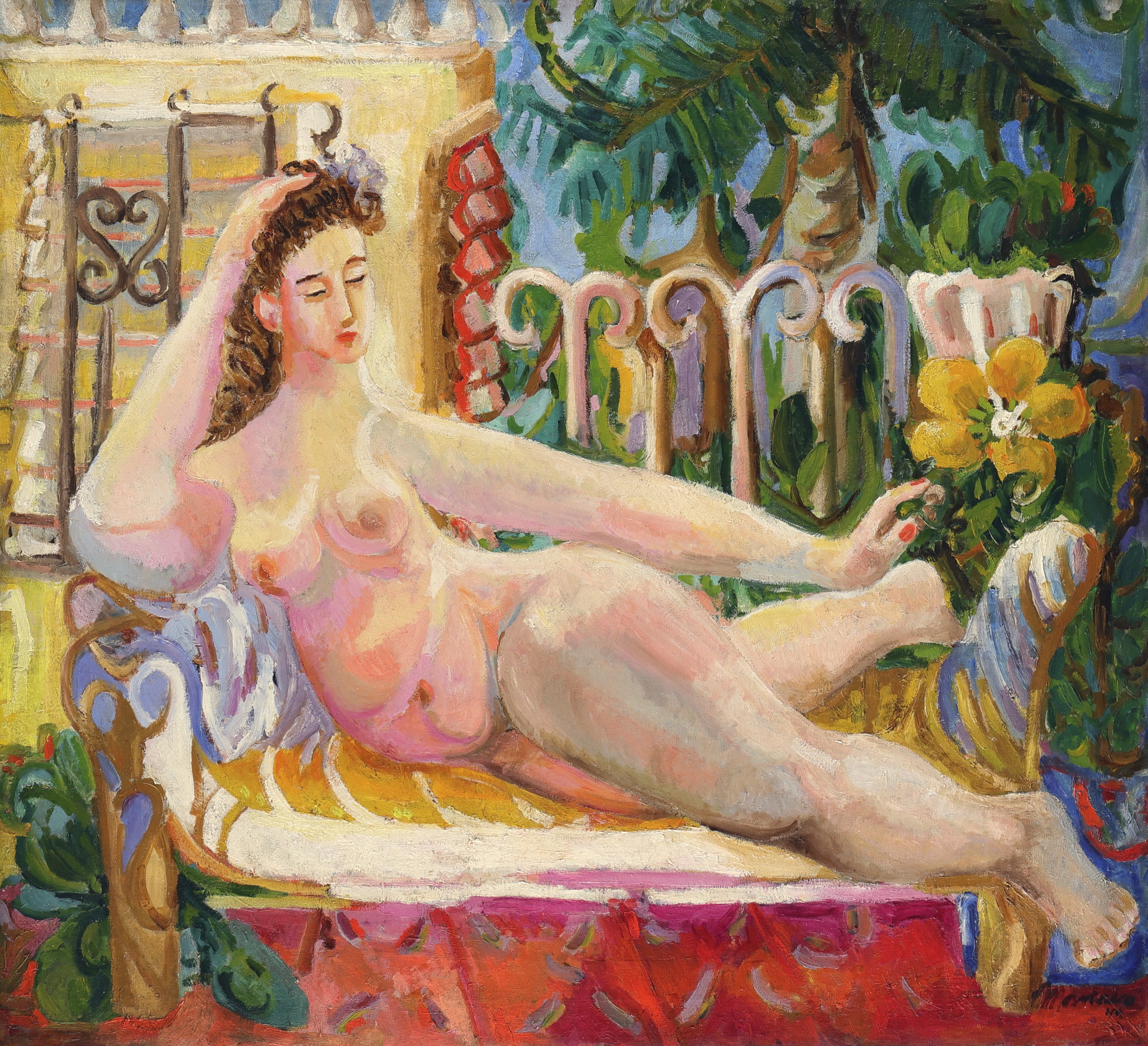 Mariano Rodríguez, Desnudo reclinado en el jardín (Reclining Nude in Garden), 1942