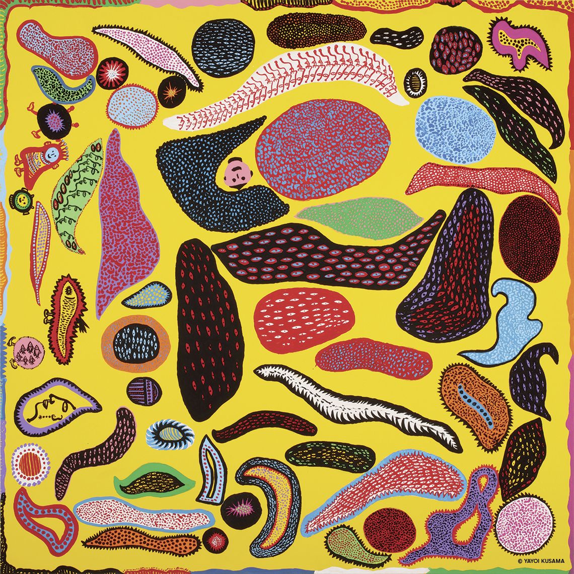 A colourful celebration of intermingling organic forms: Yayoi Kusama’s Pound of Repose 2014 Collection of the artist Courtesy of Ota Fine Arts, Victoria Miro, and David Zwirner. © YAYOI KUSAM