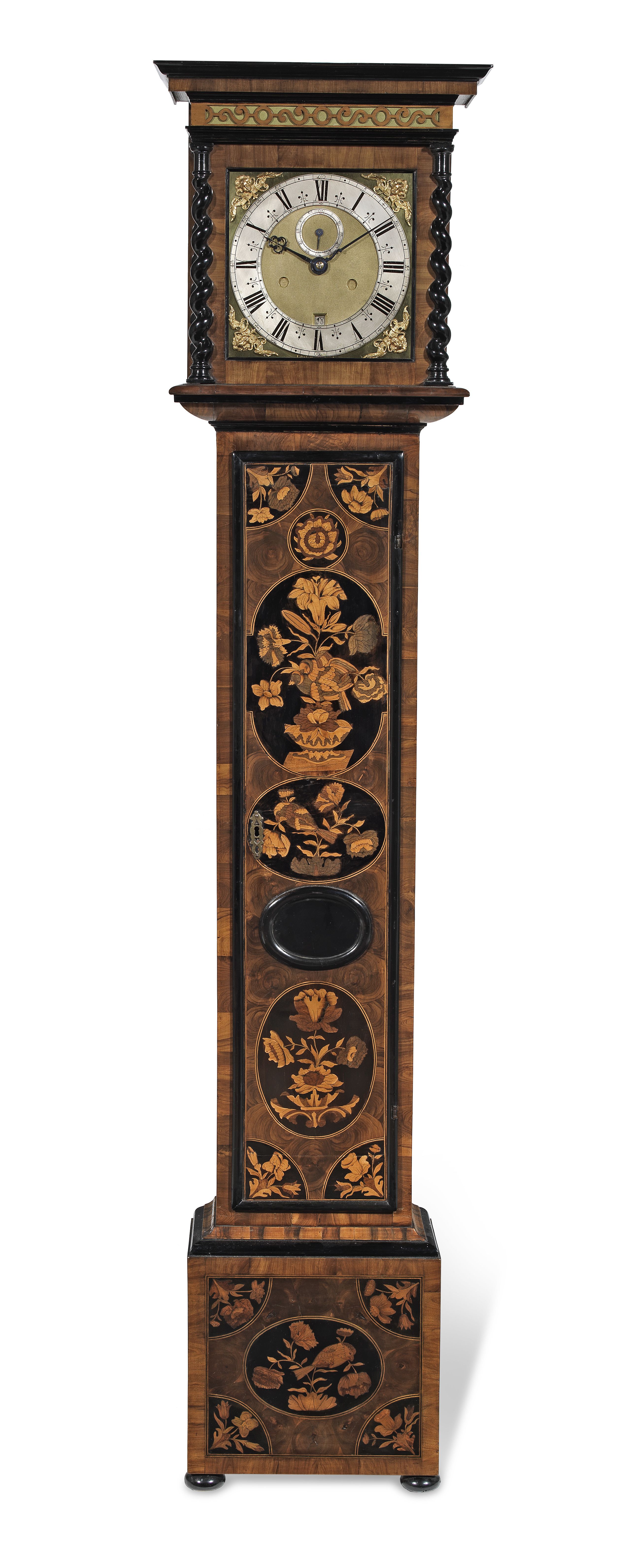 Sourced in Leeds: A good late 17th century marquetry inlaid oyster-veneered walnut and laburnum longcase clock, Joseph Knibb, London. Sold for £38,100 inc. premium