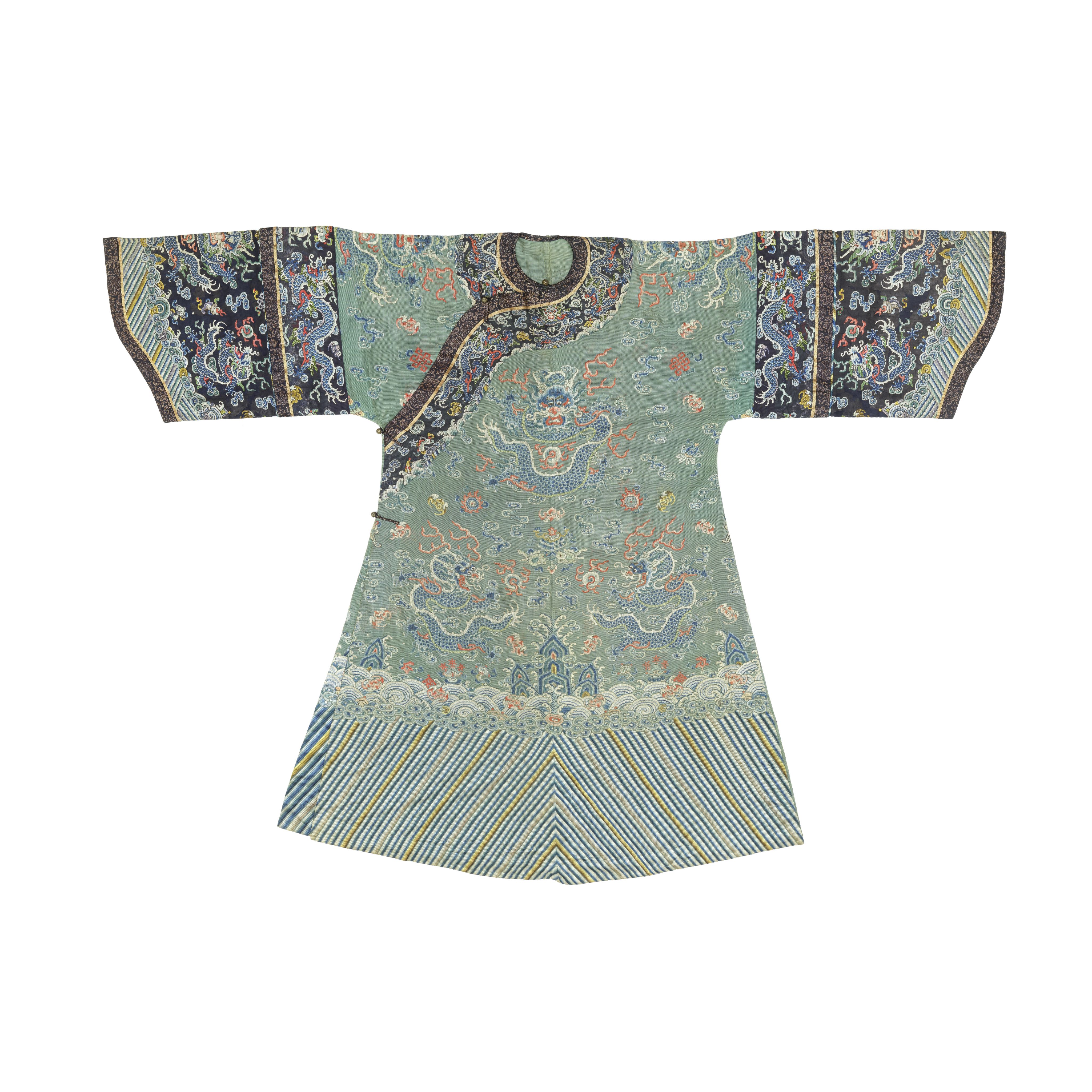 Sourced in Leeds: A Rare Imperial Noblewoman's Turquoise-Ground Gauze Silk 'Dragon' Robe, Jifu, 19th century. Sold for £24,225 inc. premium