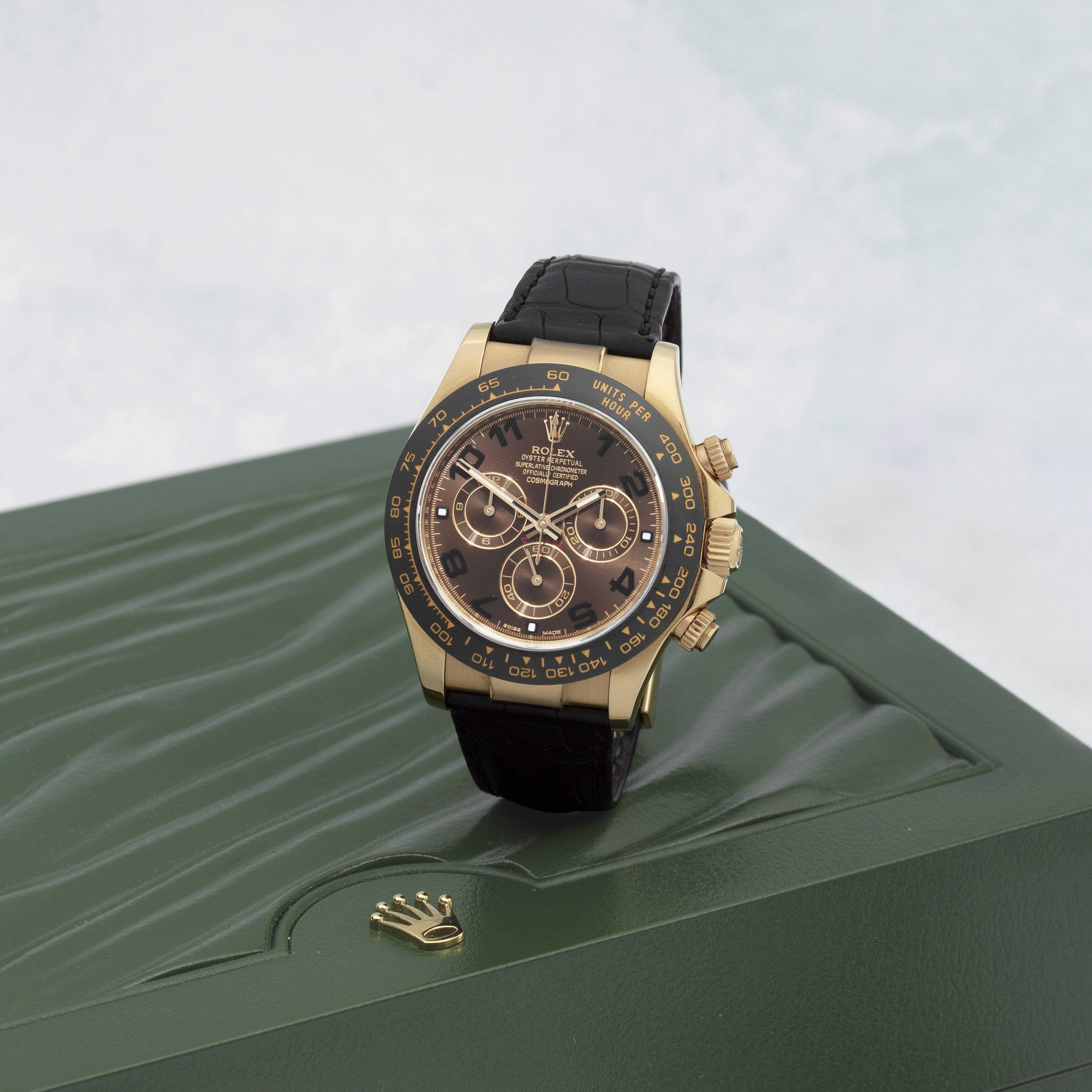 Sourced in Leeds: Rolex. A fine 18K 'Everose' gold automatic chronograph wristwatch, Cosmograph Daytona, Ref: 116515LN, circa 2015. Sold for £31,800 inc. premium