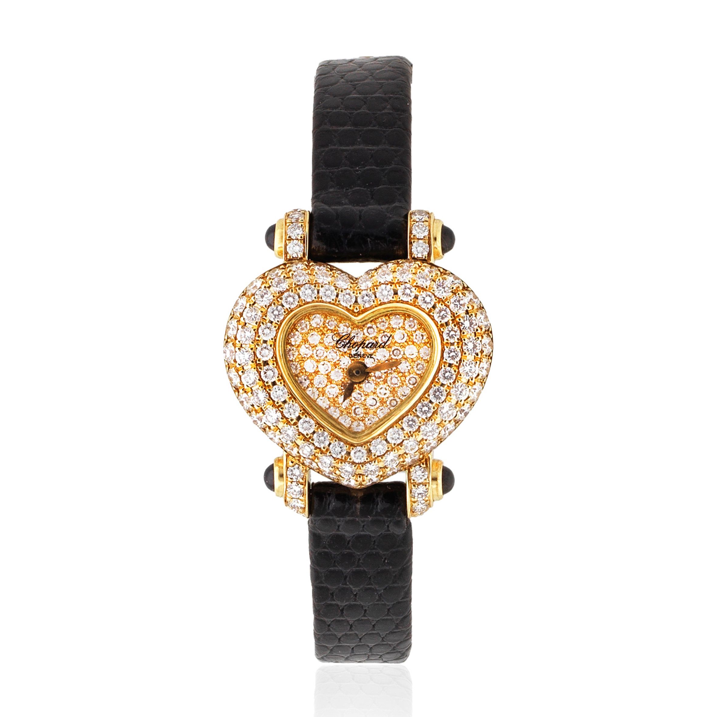 Lot 77. Chopard L.U.C. A Recently Serviced Lady's 18K Gold and Diamond Set Heart Form Wristwatch, Haute Joaillerie Collection, Ref: 13/6638-23, £ 5,000 - 7,000.