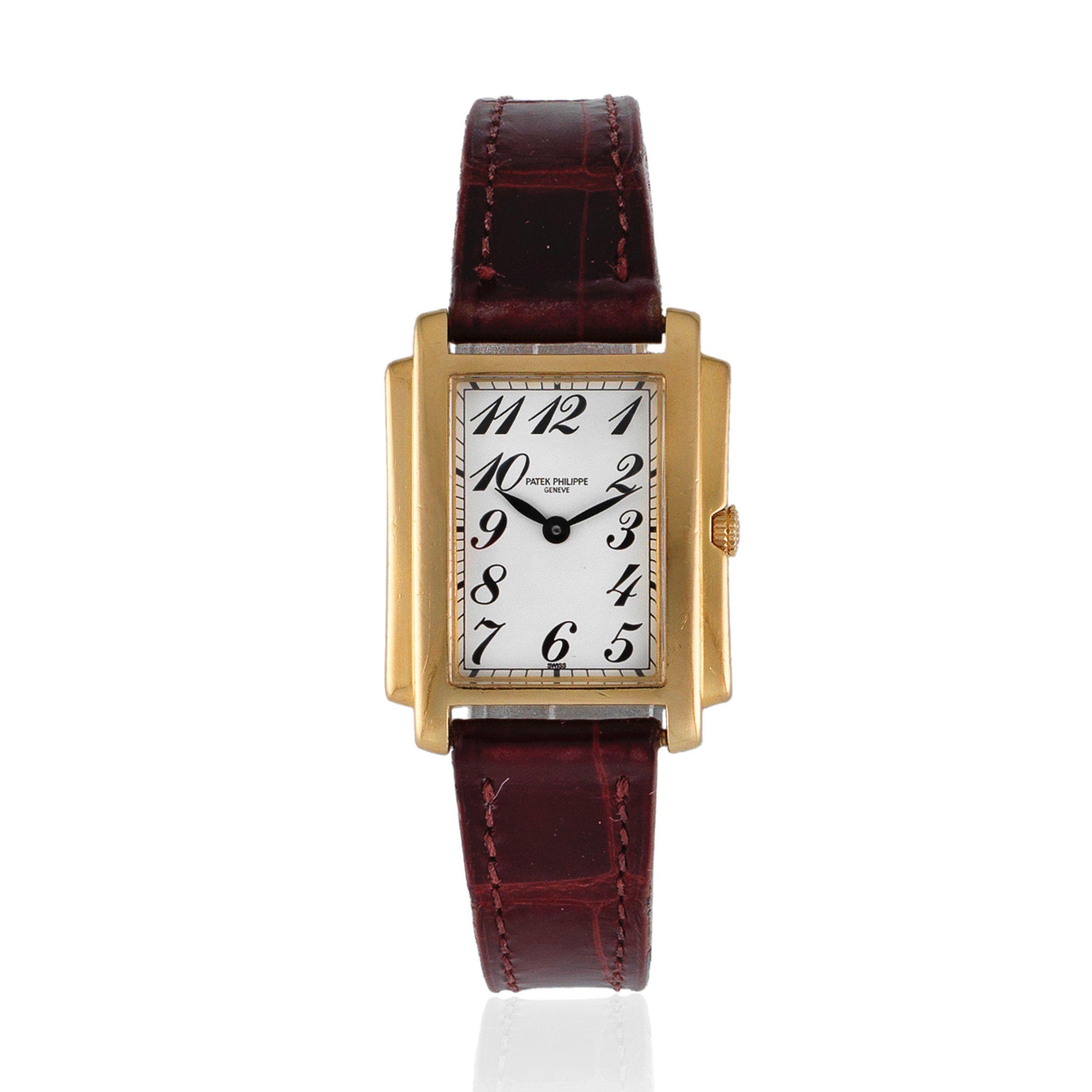 Lot 50. Patel Philippe. A Lady's 18K Gold Quartz Rectangular Wristwatch, Gondolo, Ref: 4824, £ 3,500 - 4,500.