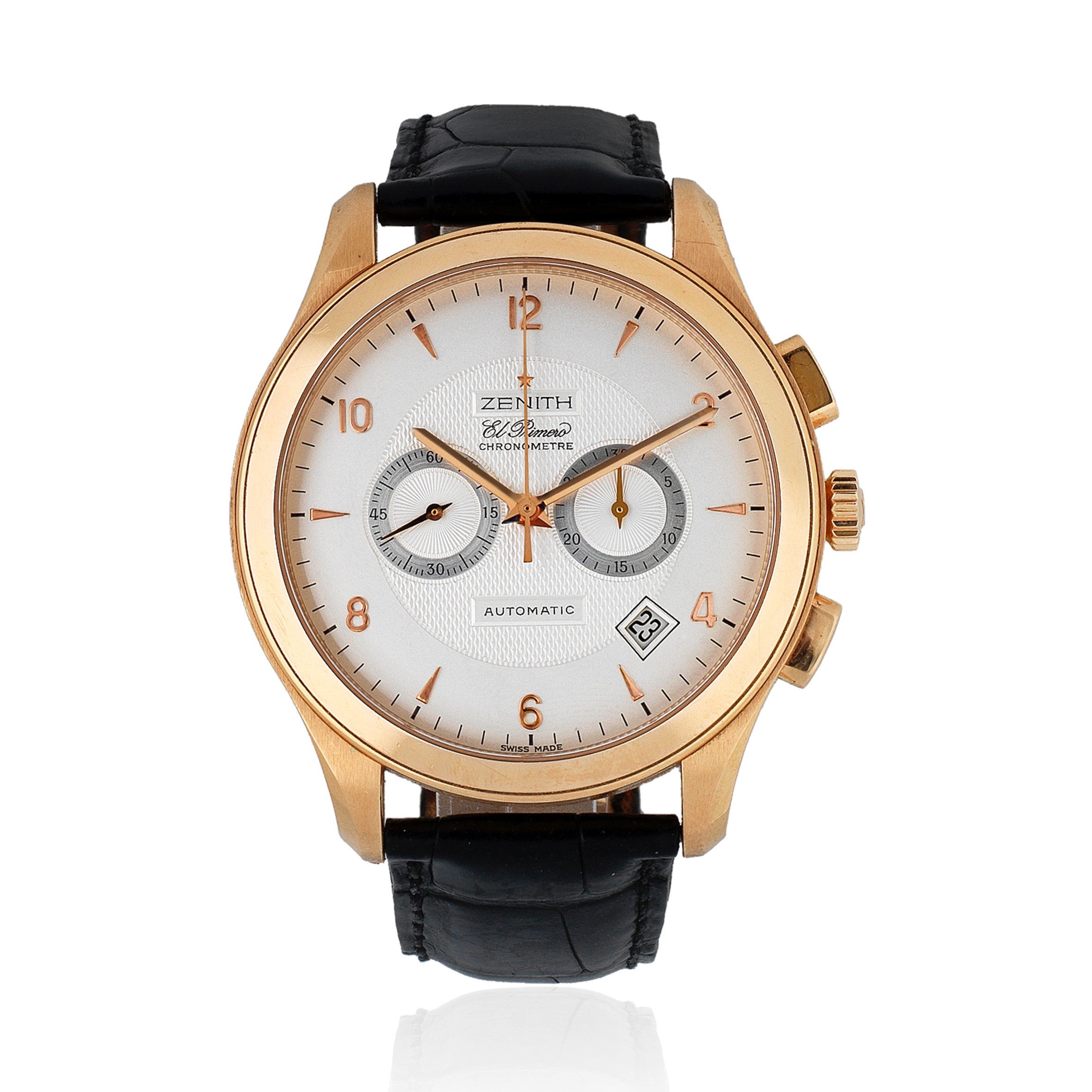 Lot 68. Zenith. A Limited Edition 18K Rose Gold Automatic Calendar Chronograph Wristwatch, El Primero Grande Class, Ref: 18.0520.4002 Limited Edition No.185/250, Circa 2000, £ 2,500 - 3,500.