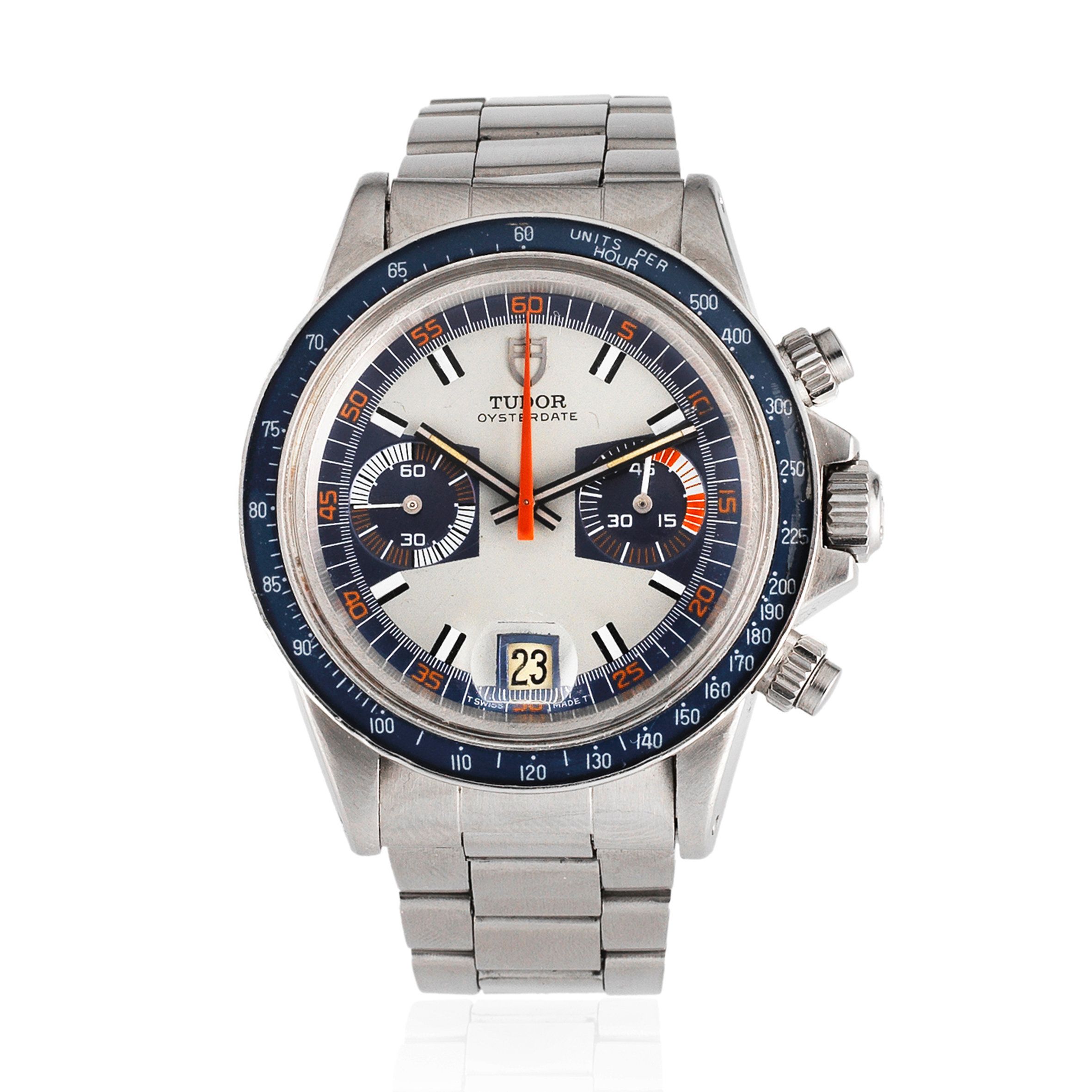 Lot 32. Tudor. A Stainless Steel Manual Wind Calendar Chronograph Bracelet Watch, Oysterdate Monte Carlo, Ref: 7149/0, Circa 1974, £ 8,000 - 12,000.