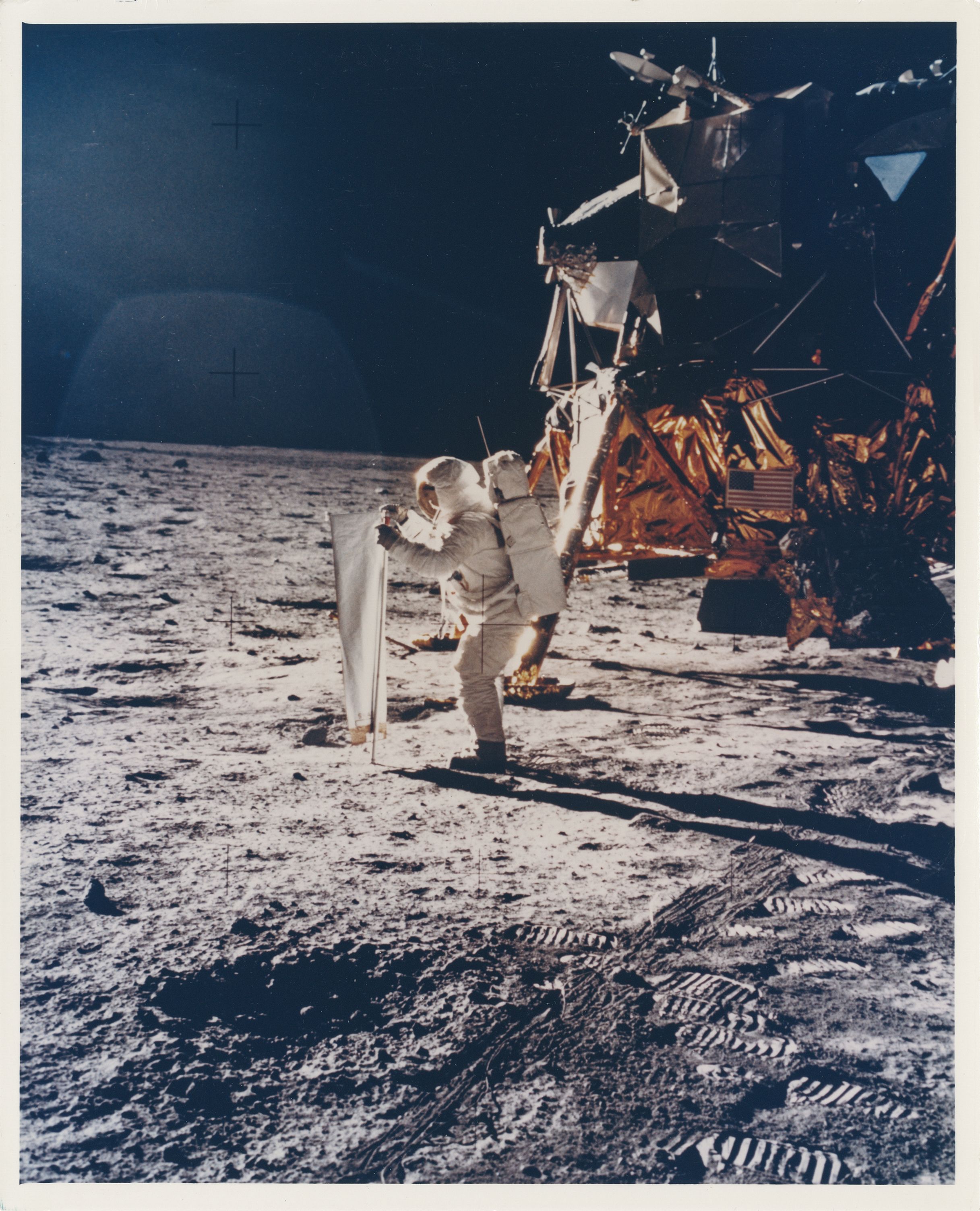 This photograph by Buzz Aldrin during the Apollo 11 mission shows mankind leaving his mark.