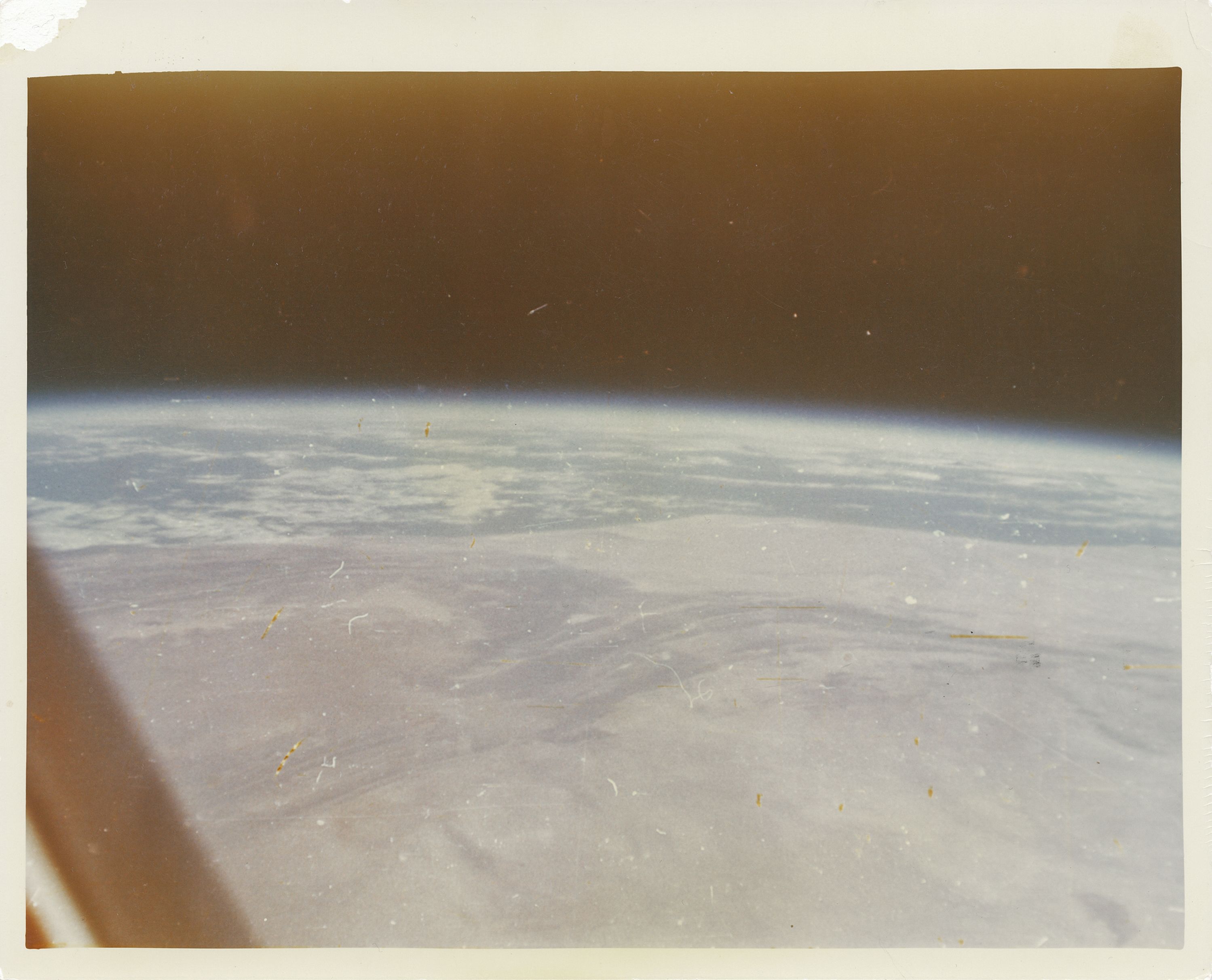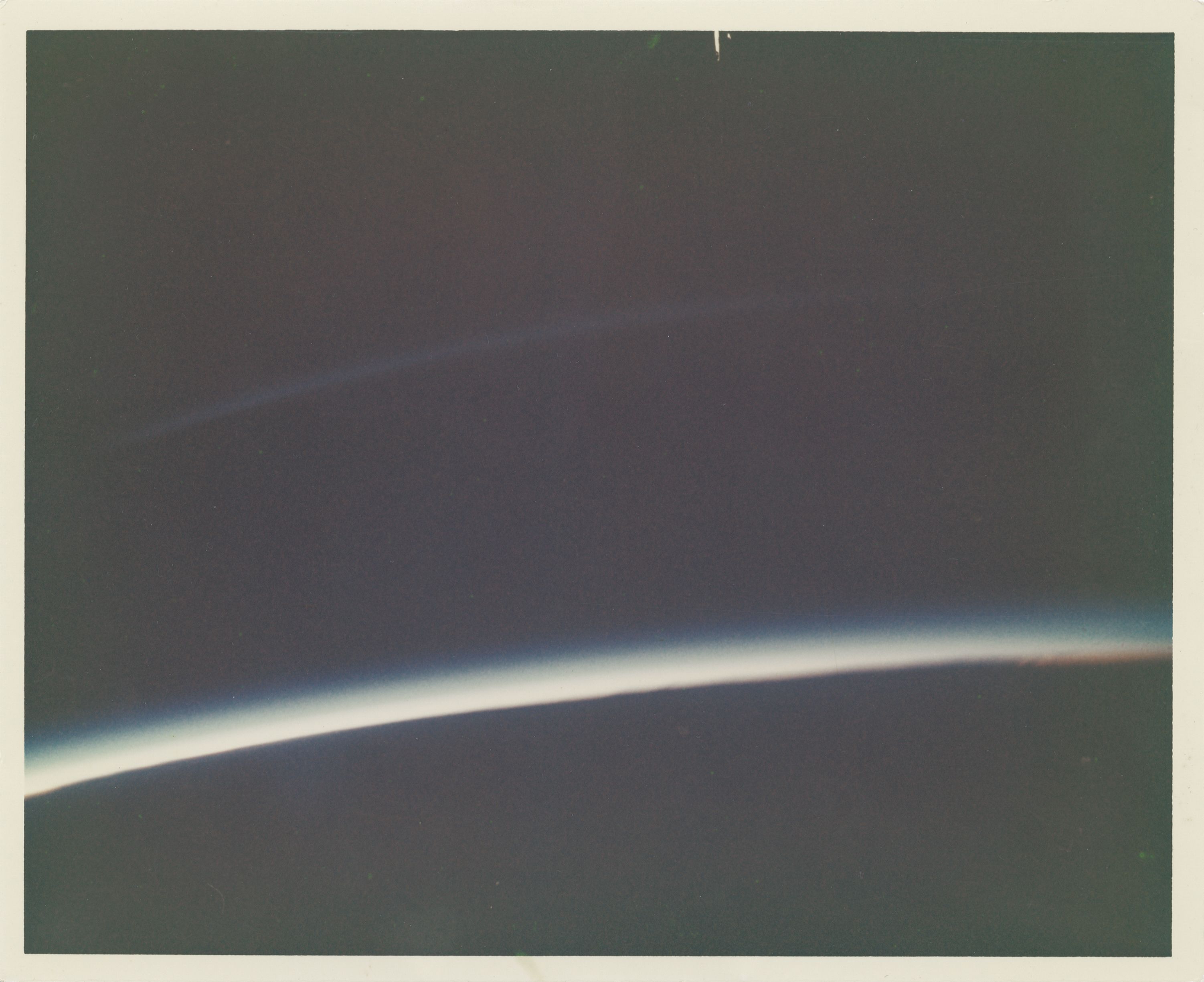 Captured by John Glenn – the first human to photograph space – aboard Friendship 7 on February 20, 1962. Glenn marveled, “Orbital sunset is tremendous... a truly beautiful, beautiful sight. The setting sun wraps a scarf around Earth's curving face.”
