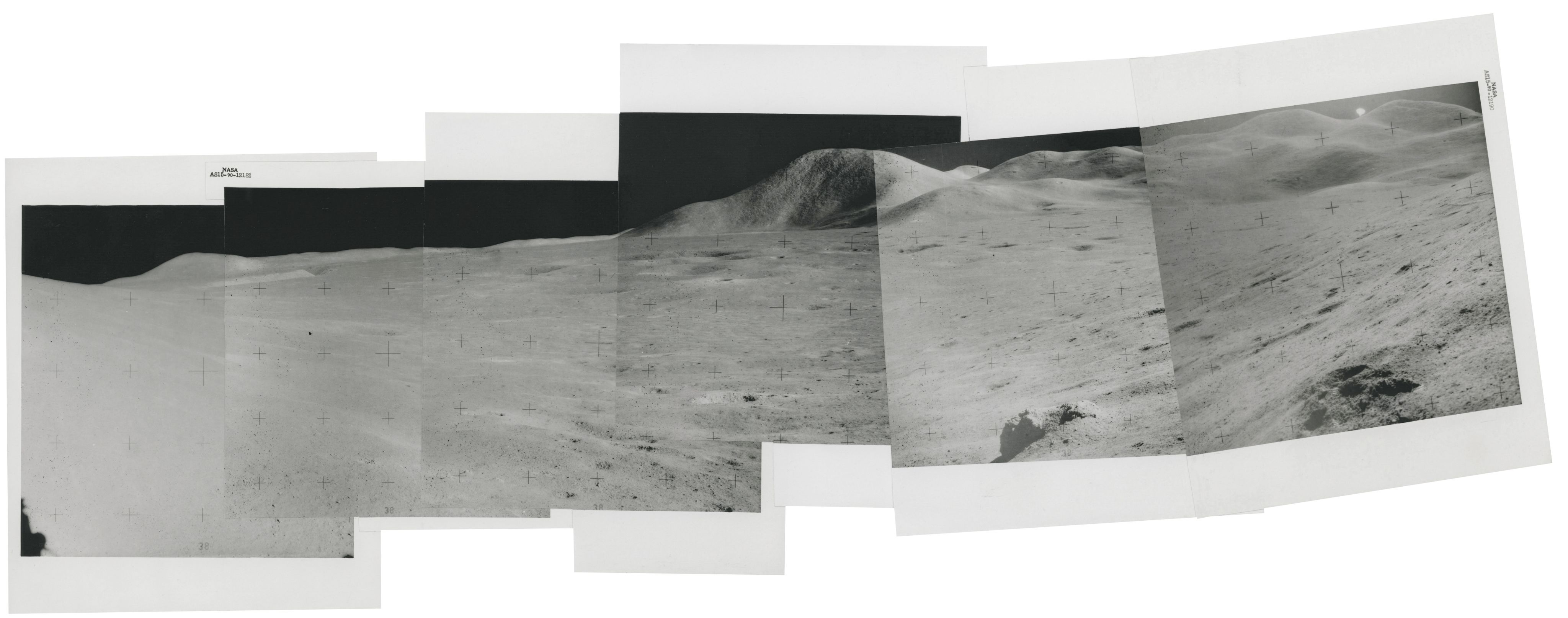 The original panorama captured by James Irwin. Exceptionally rare, the lunar panoramas taken by astronauts were used to reconstruct the geological features of the explored sites. They reveal the unreal and majestic beauty of the lunar landscape.