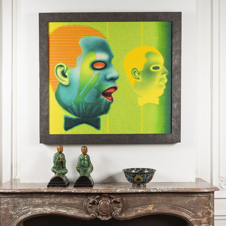Clockwise: Ed Paschke (1939-2004), Bolo, 1999. Estimate: €10,000 - €15,000; Bol Rare Chinois En Émail Cloisonné "Lotus, Vigne Et Double Poisson". Dynastie Ming, XVIe siècle. Estimate: €18,000 - €25,000; Une Paire De Tuiles Faitieres Vernissées Vertes Et Jaunes. Dynastie Ming. Estimate: €2,000 - €3,000