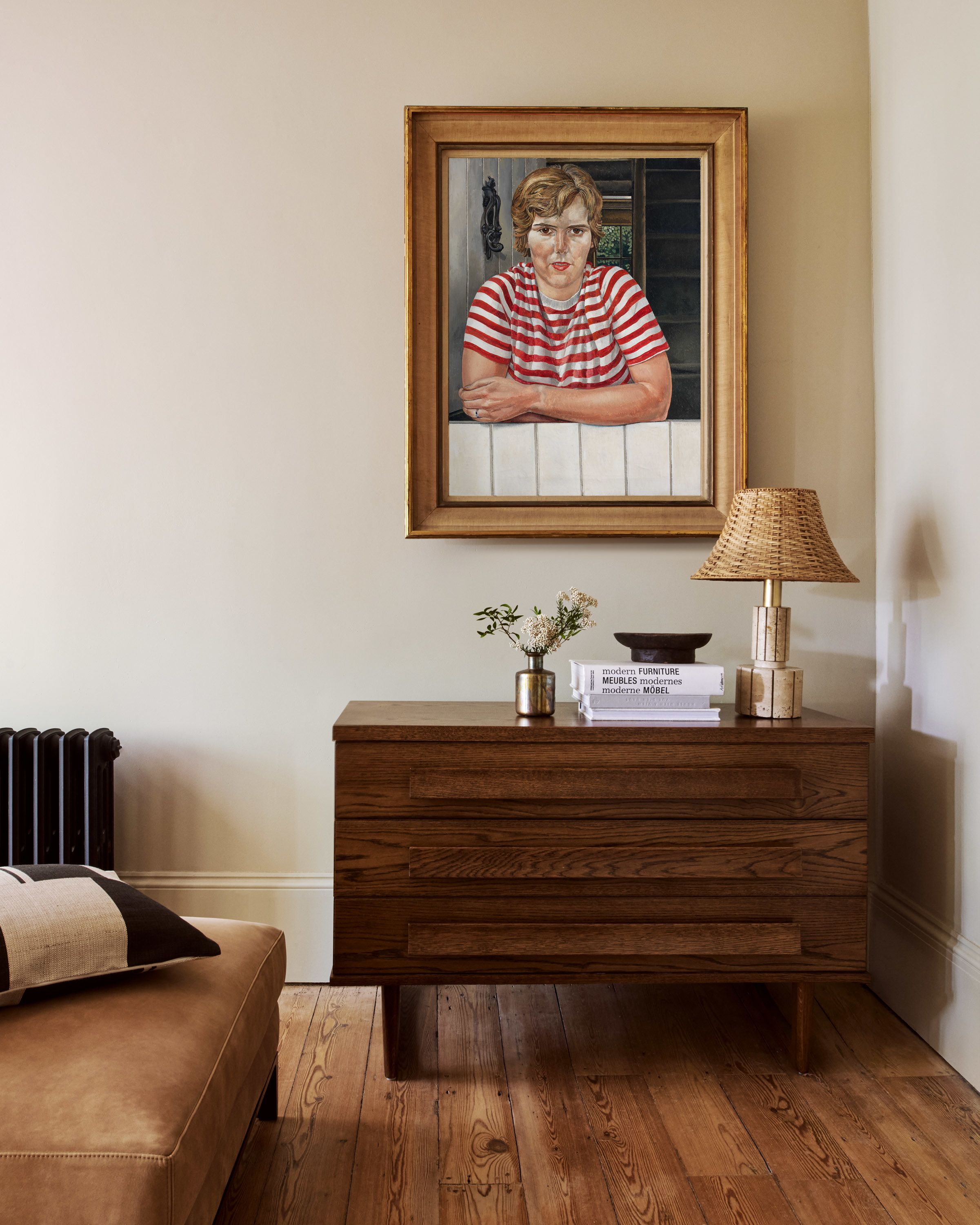 In the 1950s, already a C.B.E. and R.A., he was much in demand as a portraitist, receiving commissions from various friends and patrons (the two often became synonymous). There was the added attraction of their likenesses being exhibited at the Royal Academy. Spencer responded particularly well to his female sitters, often showing them in a half-length format at home in a relaxed setting, as in this portrait of Linda Few Brown.