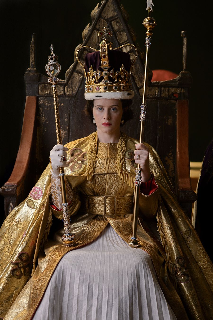 From Series 1 Episode 5 ‘Smoke and Mirrors’, the ordaining dress, Imperial Mantle and red Coronation robe worn by Claire Foy (as Queen Elizabeth), as well as her Coronation Chair, the ‘Saint Edward’s Chair’, and the world’s only reproduction of the Gold State Coach.