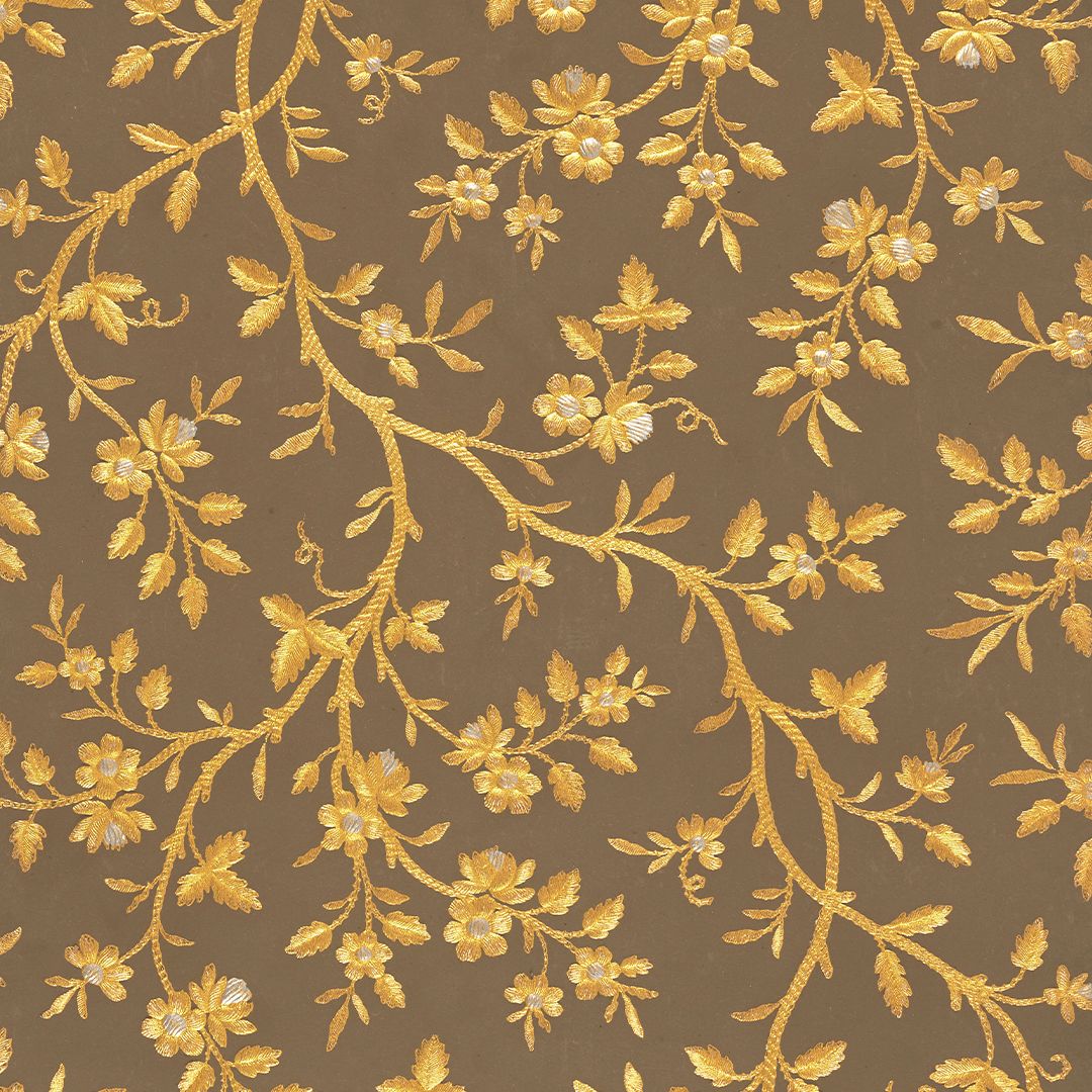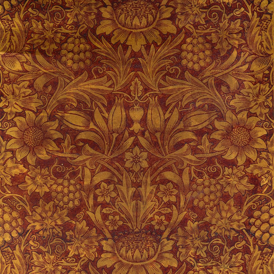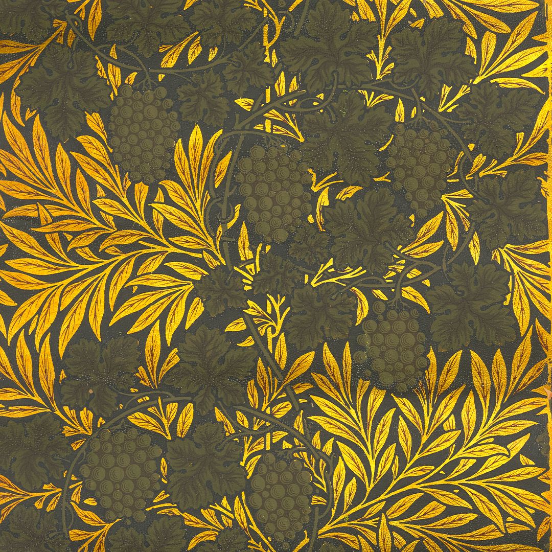 In the late nineteenth century, there were many embossed papers that imitated the rich gilded and embossed leather wall hangings that had been made in Spain and Holland in the sixteenth and seventeenth centuries. Of these, the so-called Japanese Leather Papers were the most exceptional. They were distinguished by their high relief, rich coloring, and luminous surface. The latter was created by a wash of gold highlighted by a finish coat of lacquer.