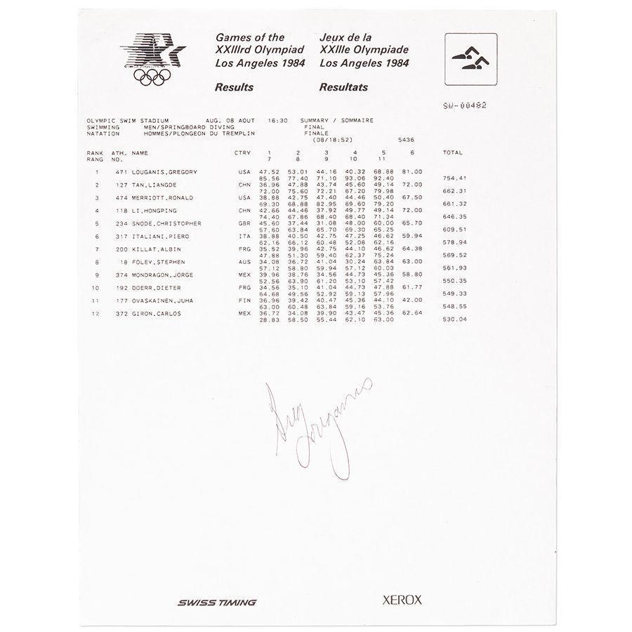 A SIGNED COPY OF THE 1984 OLYMPIC SPRINGBOARD DIVING RESULTS