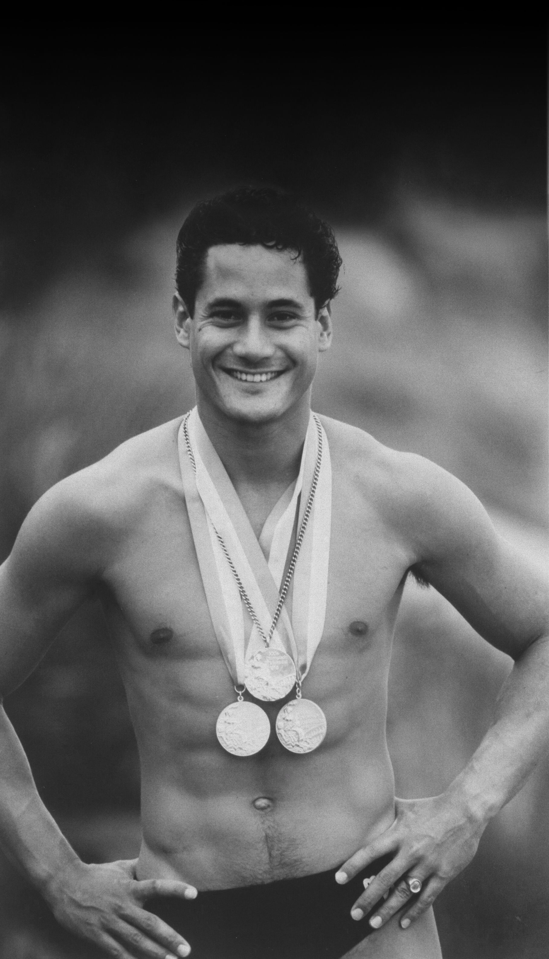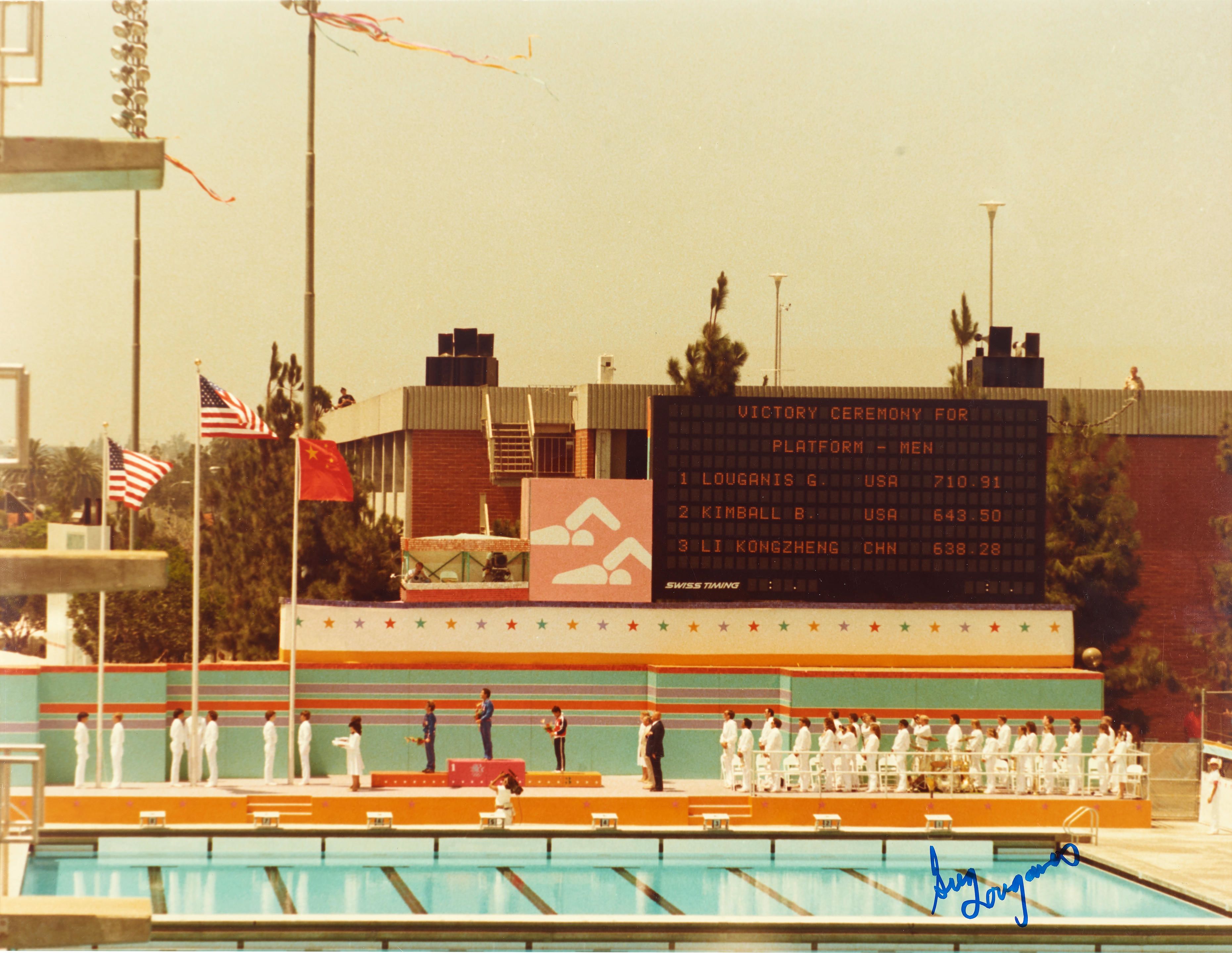 Louganis' last Olympic gold medal and the final dive of his Olympic career. Despite suffering a head injury during a preliminary springboard dive and battling his HIV+ status, Louganis swept both springboard and platform events with two gold medals.