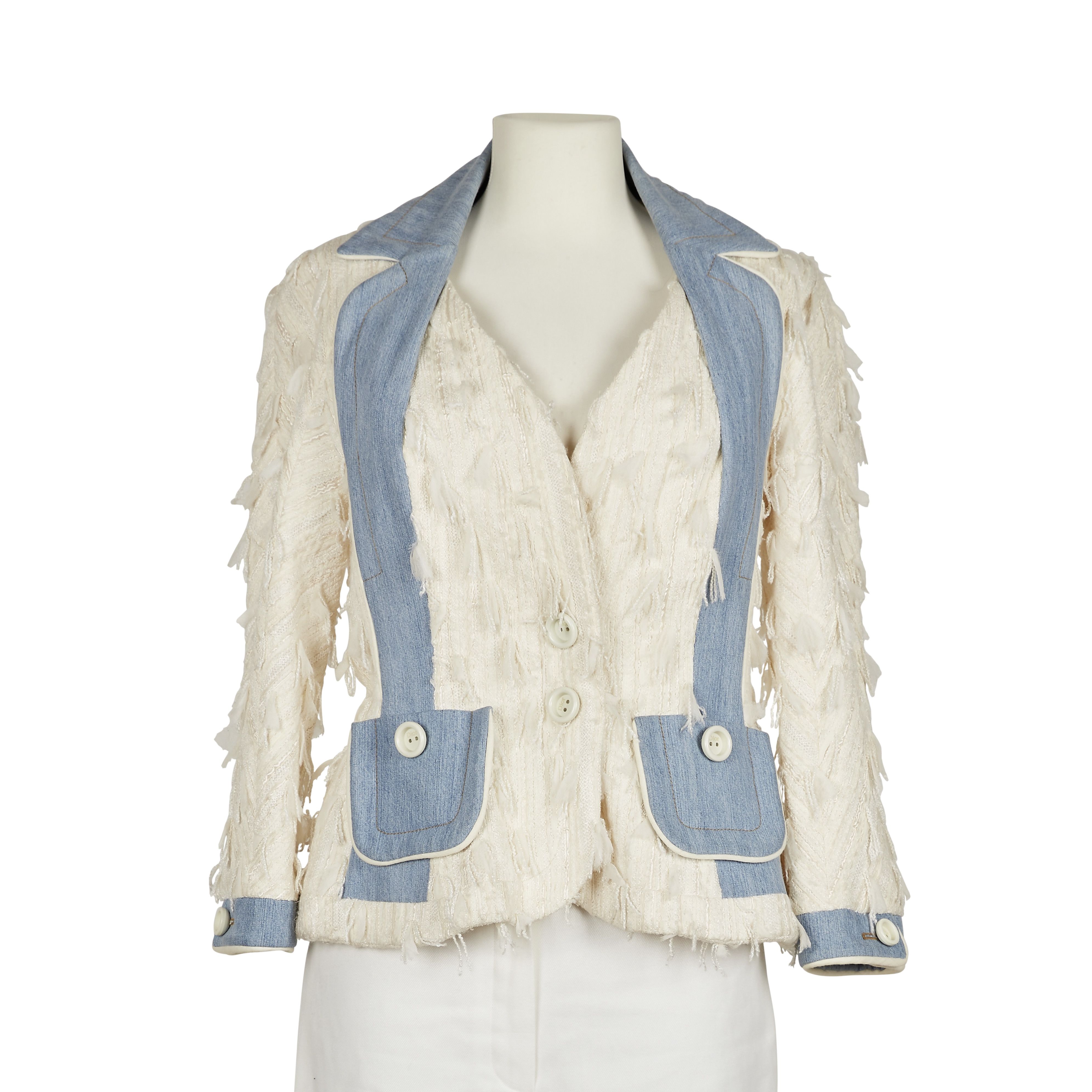 Lot 67. Christian Dior : Veste Bar en Tweed Ivoire et Denim Délavé, Printemps-Été 2005. Estimation : 600 - 1 000 €.