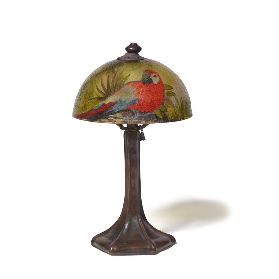 Handel (Established 1885), Chipped Ice 'Parrot' Boudoir Lamp. Estimate: US$4,000 - $6,000